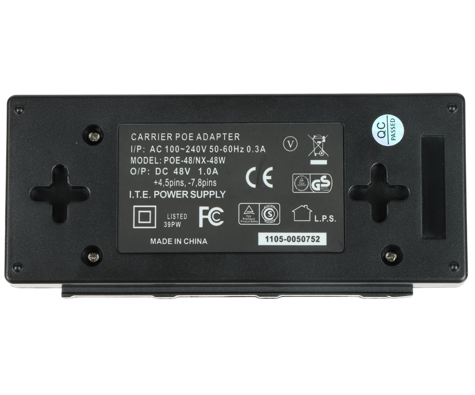 POE-48/NX-48W ir paredzēts ierīces energoapgādei, izmantojot PoE tehnoloģiju; Sisendpinge: 100 V … 240V AC Väljundpinge: 48 V DC Väljundvõimsus: 48 W