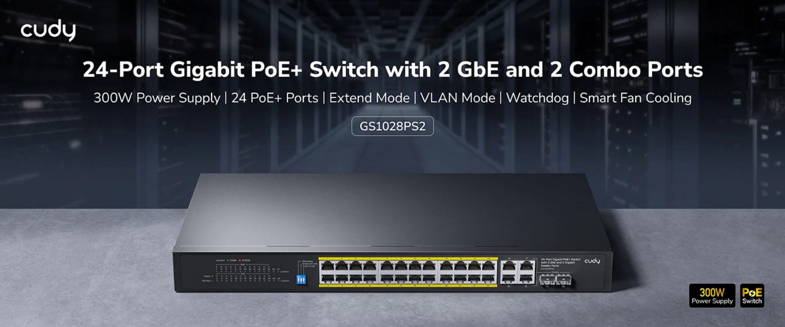 SWITCH POE GS2028PS4-300W 24-PORTU SFP CUDY