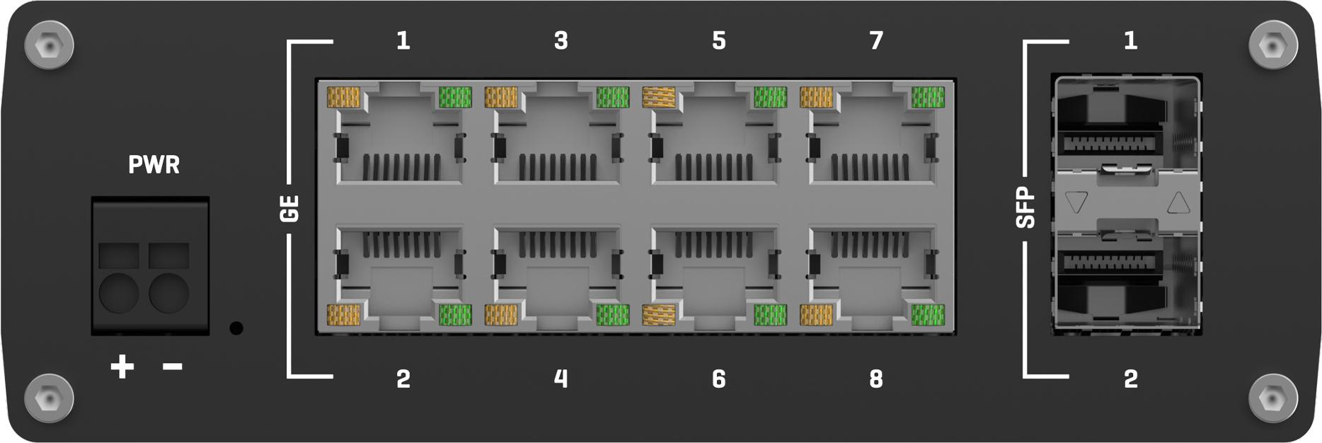 - 8 GE porti – nodrošina efektīvu datu pārsūtīšanu.