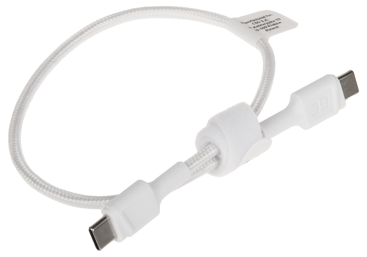 Kaabel: Ühendage USB-C / Ühendage USB-C Juhtme pikkus: 0,3 m Värv: Valge USB-standard: 2.0 Valitud funktsioonid: Toetatud edastuskiirus: 480 Mbps, Power Delivery tehnoloogia – 60 W, kaabli topeltvarjestus, kinnitus kevlarkiuga