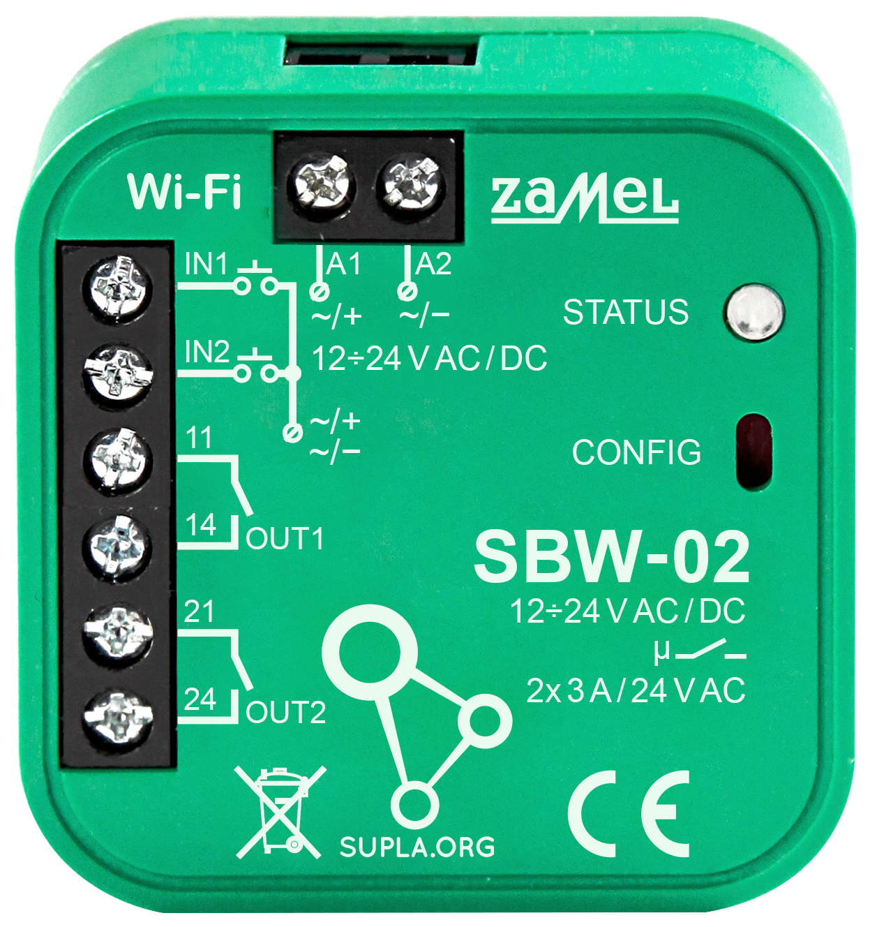 NUTIVÄRAVA JA UKSE KONTROLLER SBW-02 Wi-Fi, SUPLA 12 … 24 V AC/DC ZAMEL