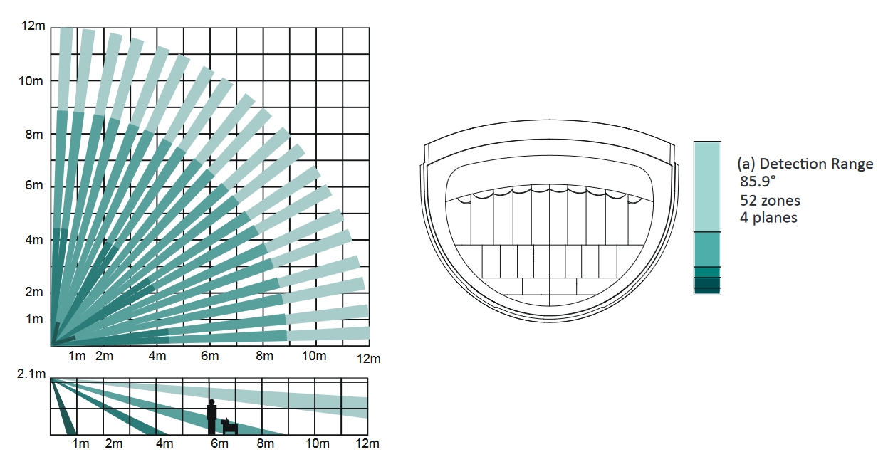 – Sensora uztveršanas zona : 12 m