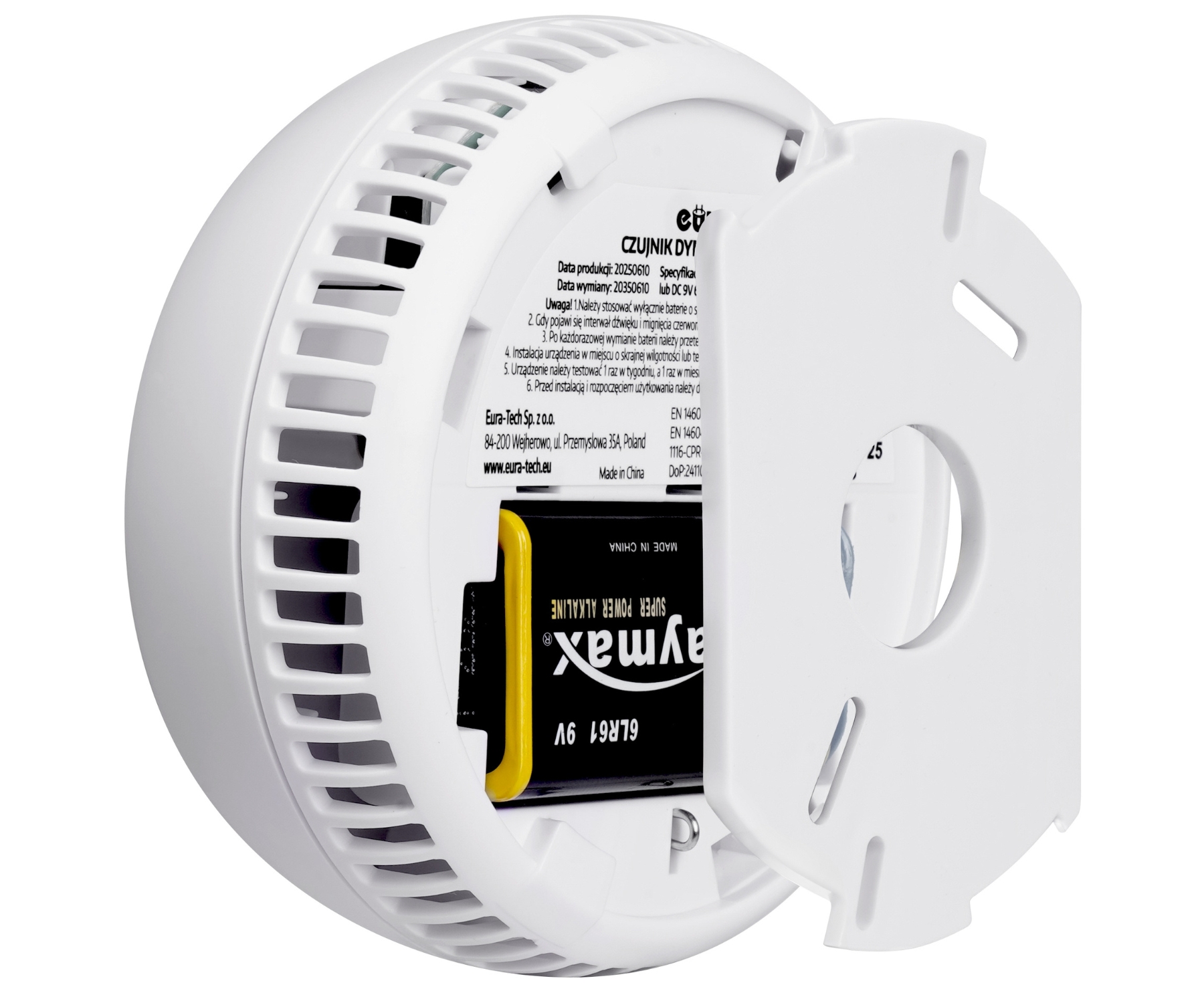 Aptikimas: dūmai </span>;>Akumuliatoriaus įkrovimas: Baterija 9V, tipas 6F22/6LR61 </span>;