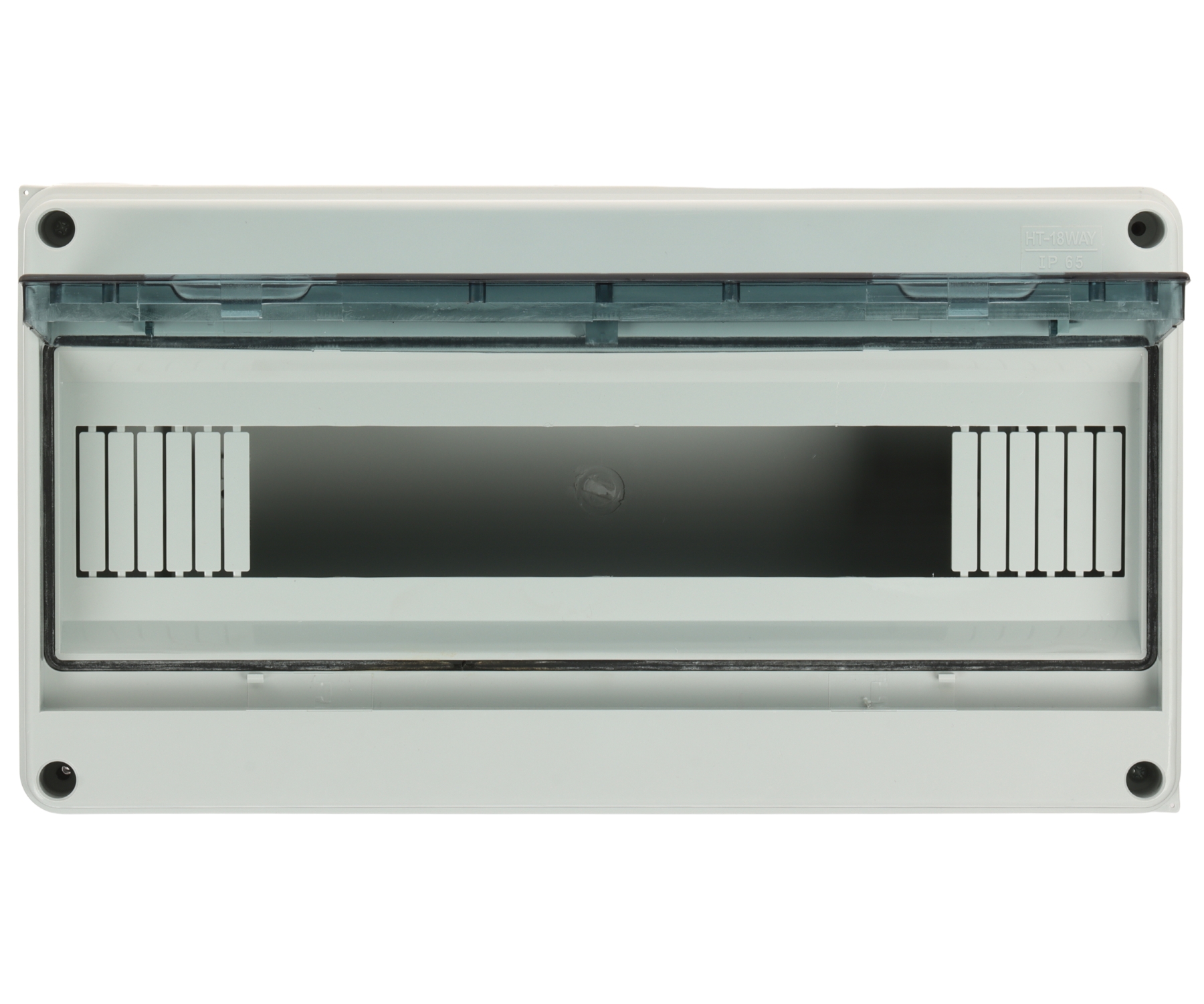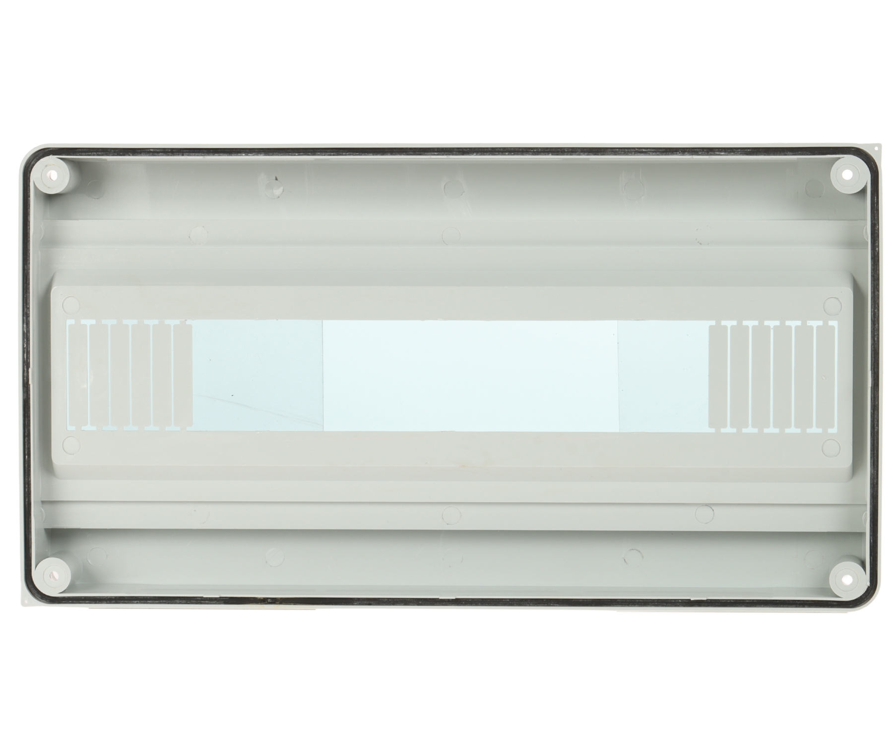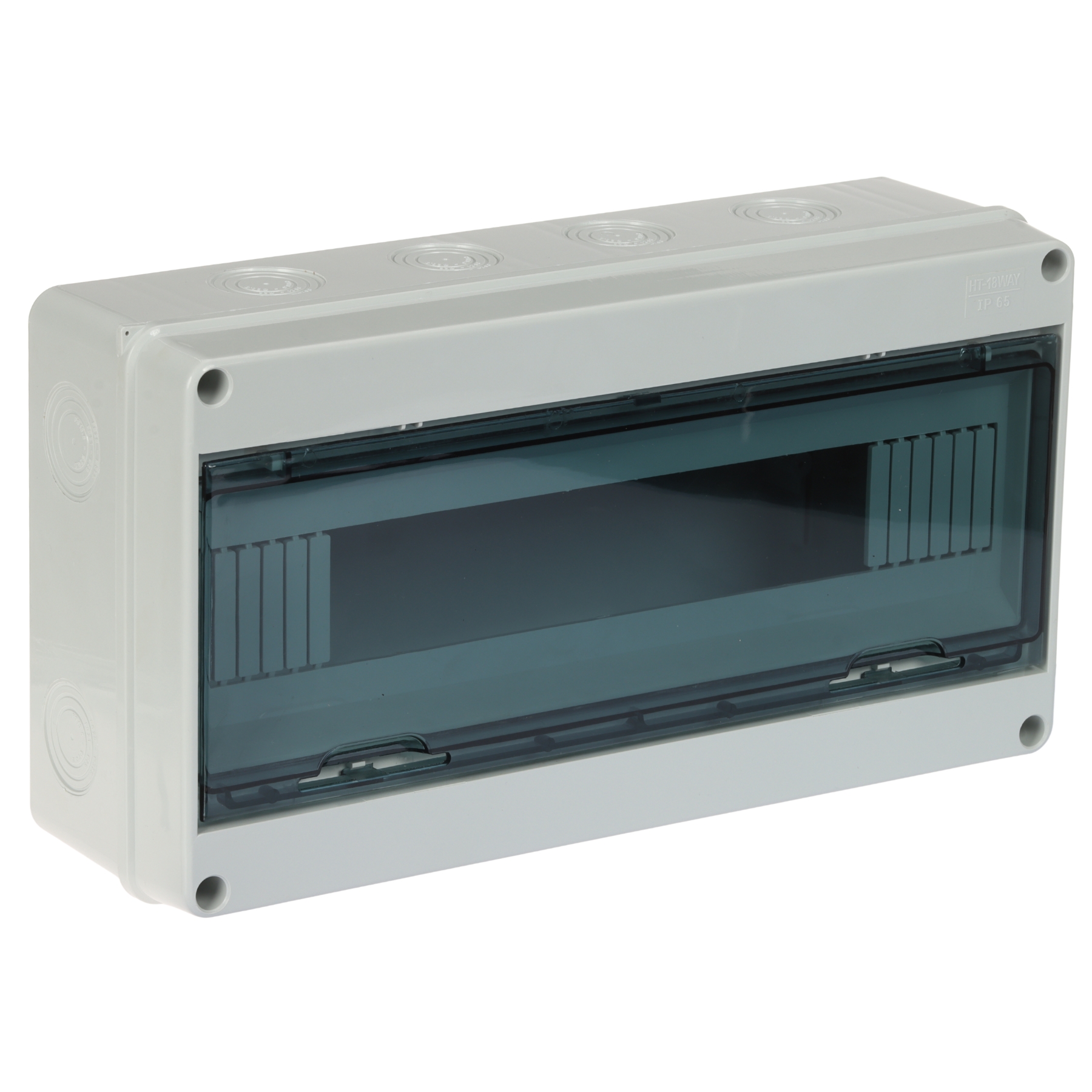 Įdiegtų modulių skaičius: 18 x 1 eilių </span>;>Skaidrios durys</span>;>Apsaugos klasė: IP65 </span>;>Dydis: 360 x 198 x 105 mm </span>;