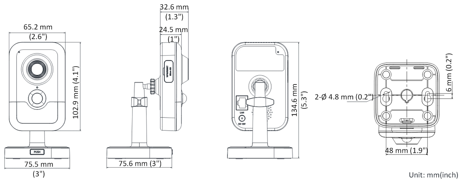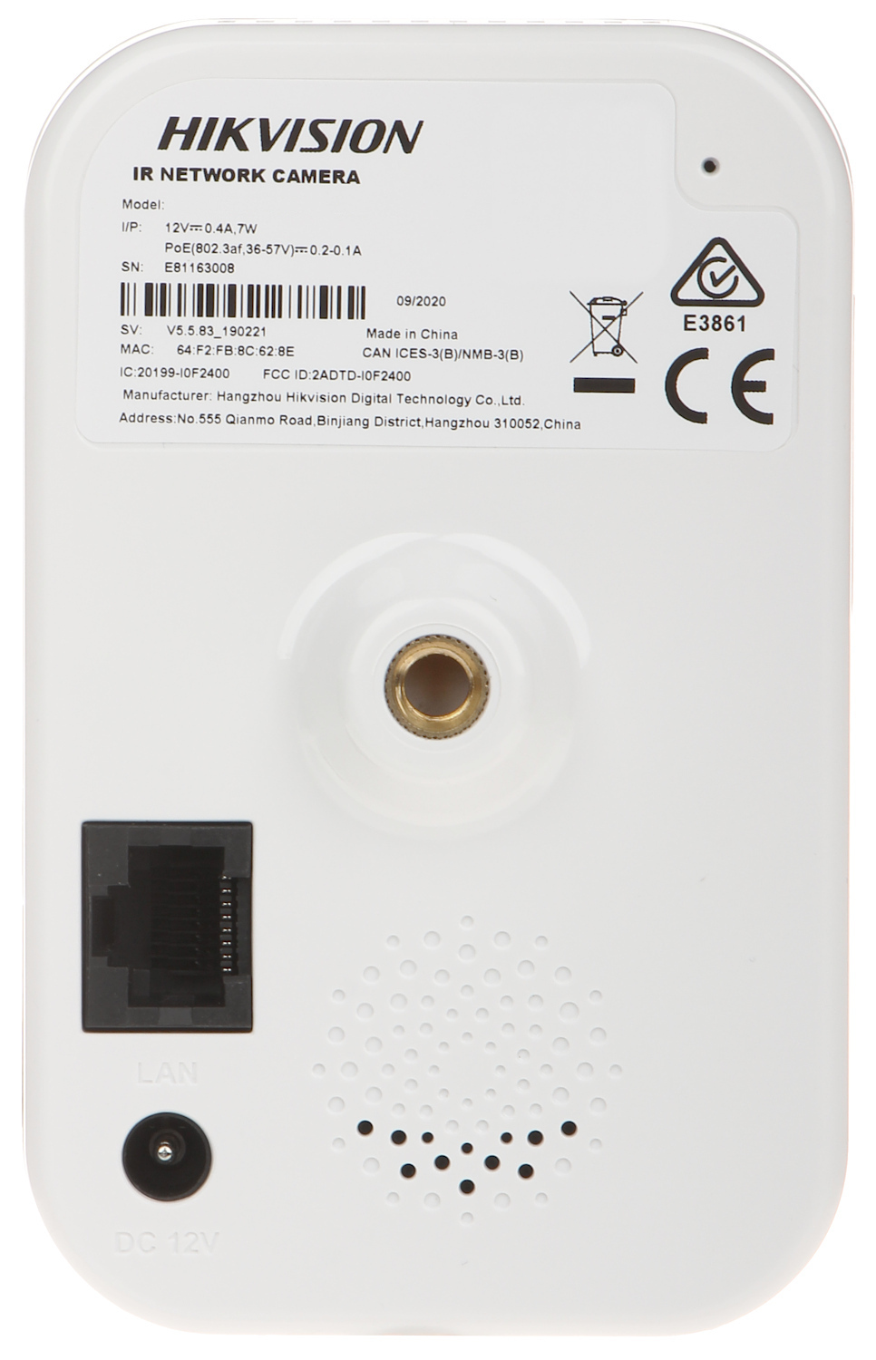 Jutiklis: 1/2,8 colio </span>;>Matricos dydis: 8,3 megapikselių </span>;>Rezoliucija: 3840 x 2160, 3200 x 1800, 2688 x 1520, 1920 x 1080 </span>;>Matomumo kampas: 108° </span>;>Infraraudonųjų spindulių apšvietimo aptikimo sritis: 10 metrų </span>;>Garsas: Integruotas mikrofonas, įmontuotas garsiakalbis, dvipusio garso srautinio perdavimo palaikymas </span>;>Vaizdo glaudinimo metodas: H.265+ </span>;>Atminties kortelės lizdas: Palaiko iki 512 GB talpos „Micro SD“ atminties korteles (galima įrašyti vietoje) </span>;>Maitinimo šaltinis: PoE (802.3af), 12V DC </span>;