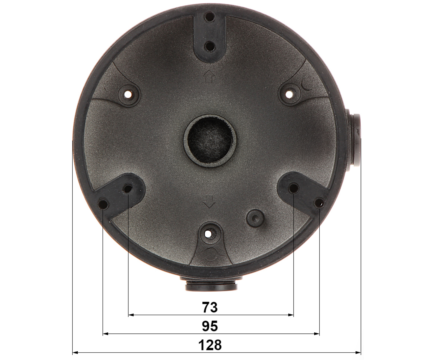 Montavimo angų išdėstymas: 73 mm, 95 mm </span>;>Atidarymų skaičius: 2x3 </span>;>Tvirtinimo detalės skersmuo: Ø 122 mm </span>;>Medžiaga: Aliuminis </span>;>Spalva: Juoda </span>;>Atstumas nuo tvirtinimo paviršiaus: 33.8 mm </span>;