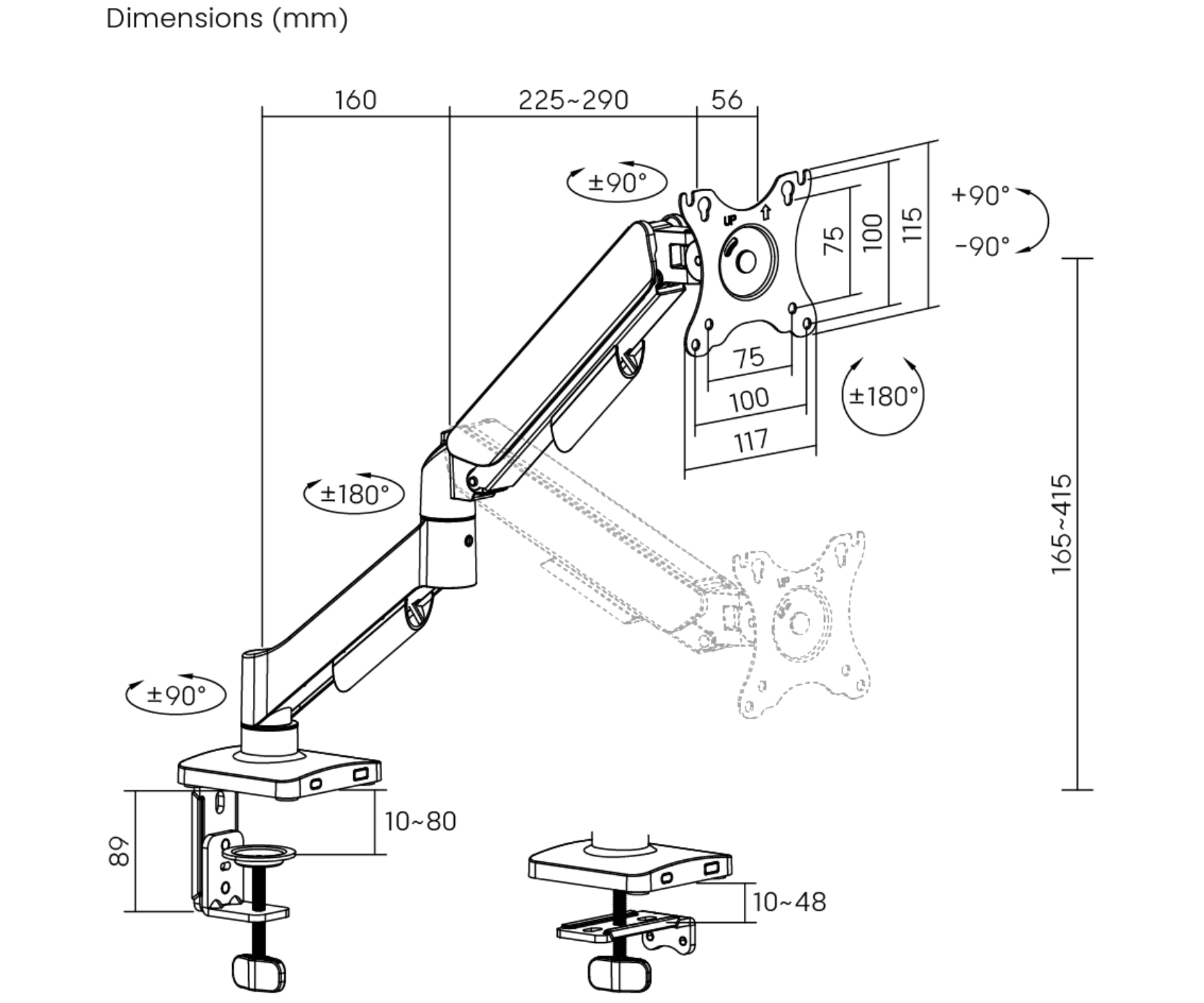 Surinkimo standartas: VESA – 75 x 75, 100 x 100 Ekrano dydis coliais: 17 " … 32 " Keliamoji galia: 9 kg