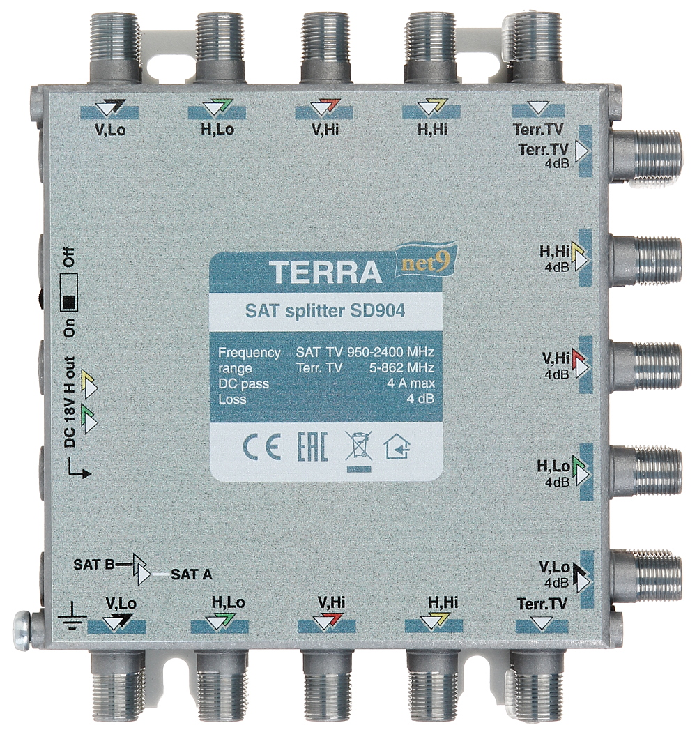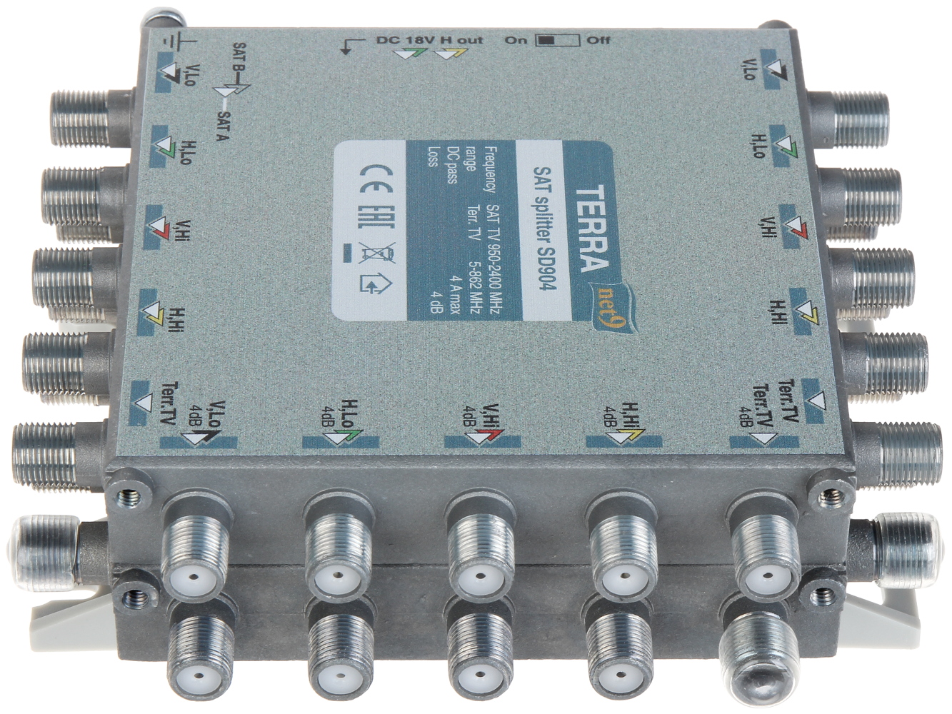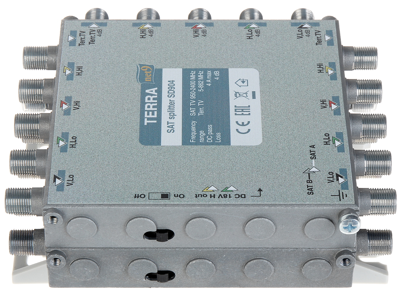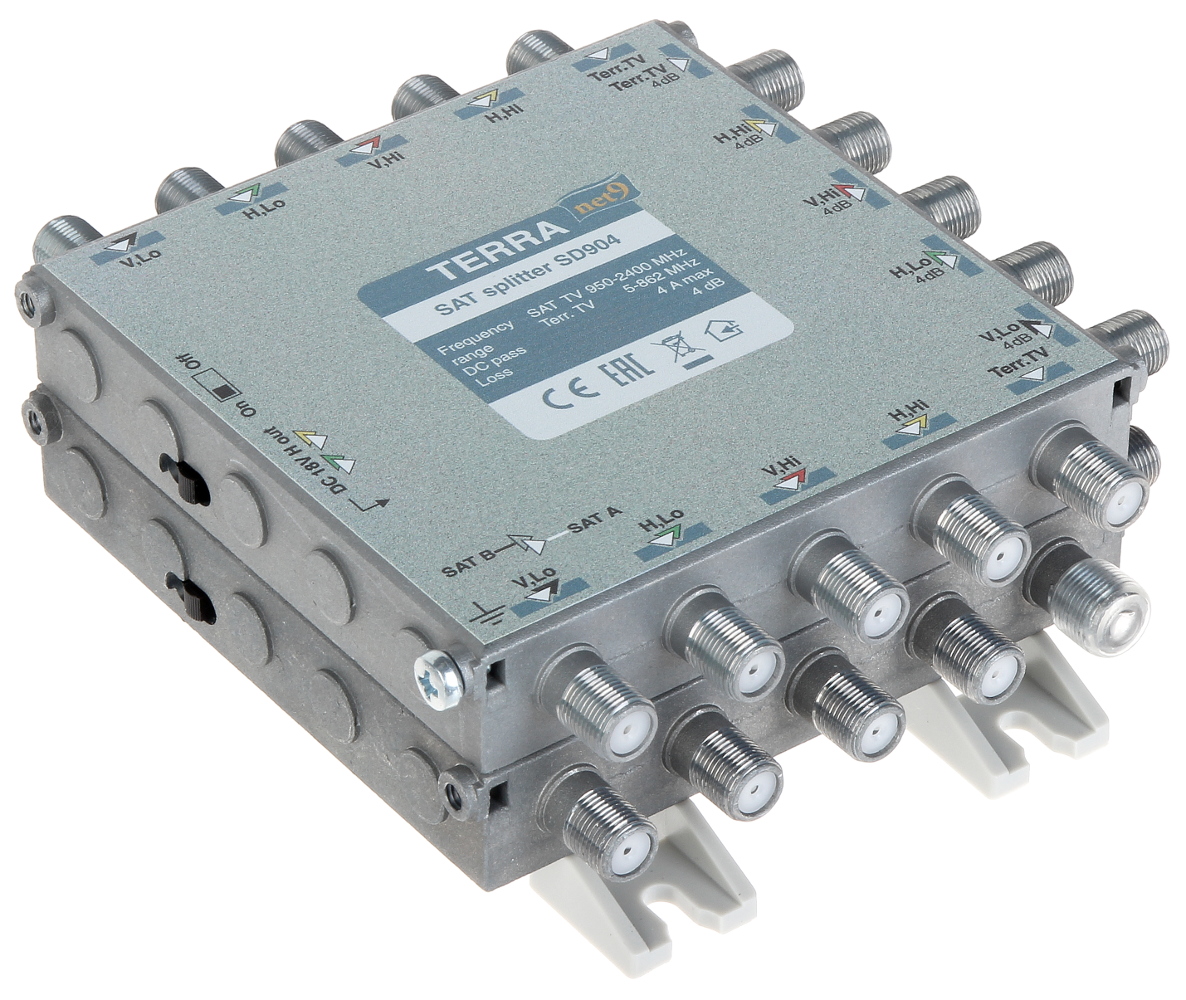 | Dažnių diapazonas: | 950 … 2400 MHz – SAT, 5 … 862 MHz – RTV |
