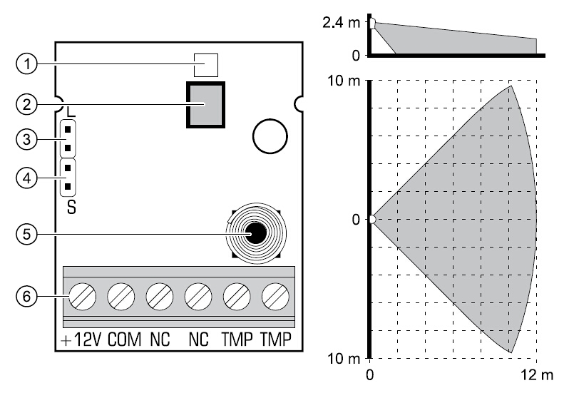 | Priėmimo zona: | 12 x 20 m, 90° |