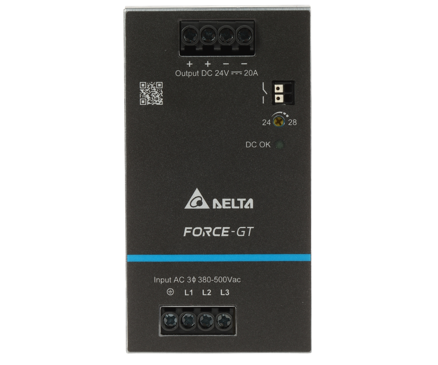 Įtampos galia: 380 … 500 V AC (3 fāzes) Išėjimo įtampa: 24 V nuolatinė srovė Išėjimo srovės nustatymas: 24 … 28 V Maitinimo adapterio srovės našumas: 20 A Išėjimo galia: 480 W