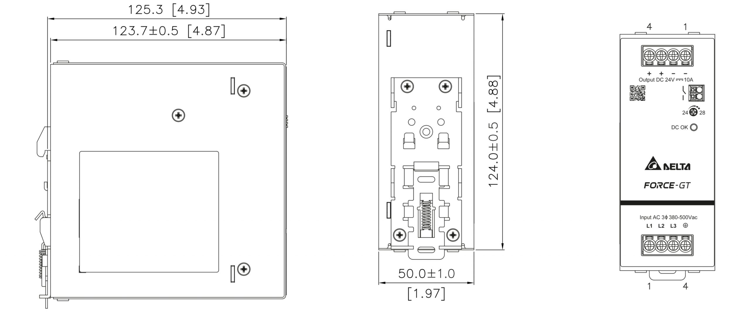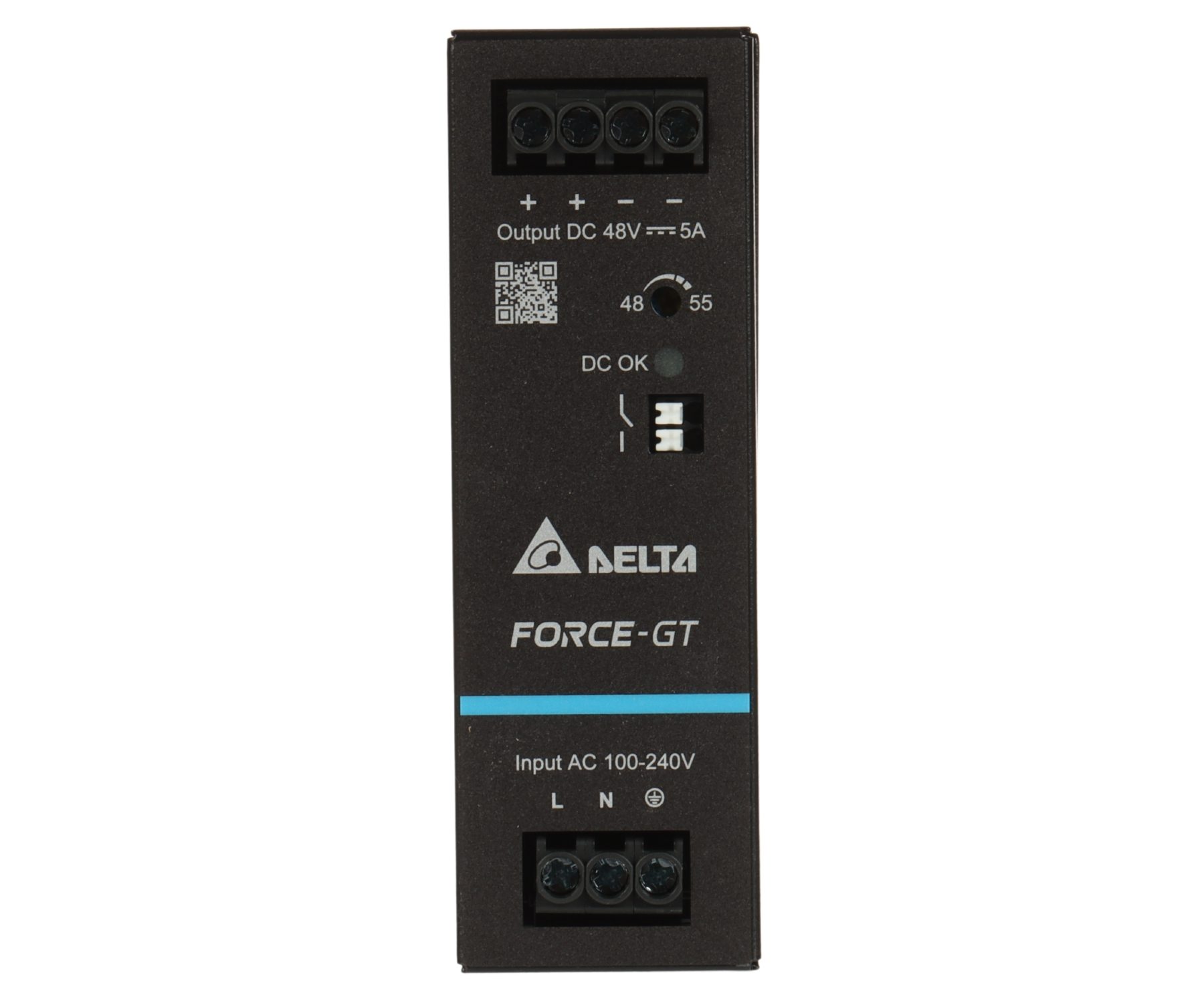 Įtampos galia: 100 … 240 V AC (1 fāze) Išėjimo įtampa: 48 V DC Išėjimo srovės nustatymas: 48 … 55 V Maitinimo adapterio srovės našumas: 5 A Išėjimo galia: 240 W