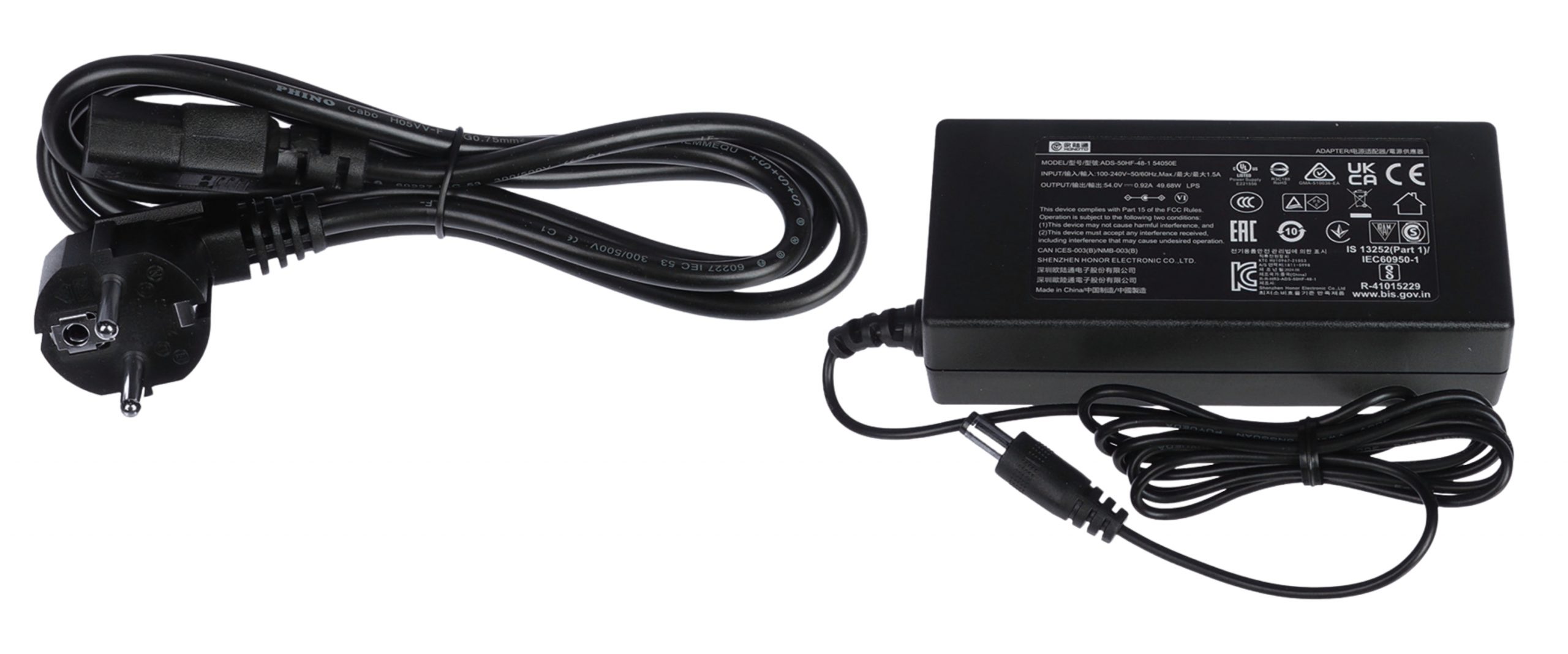 54 V DC / 0.92 A (komplektā strāvas adapteris)