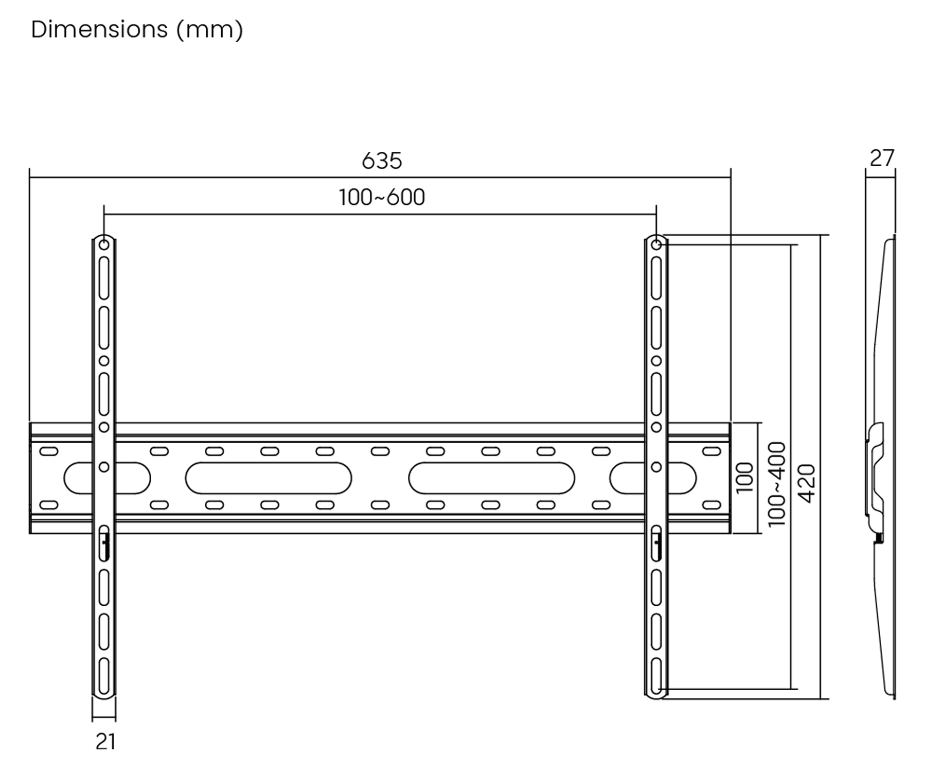Ekrano dydis coliais: 37 " … 80 " Keliamoji galia: 45 kg Atstumas nuo tvirtinimo paviršiaus: 27 mm