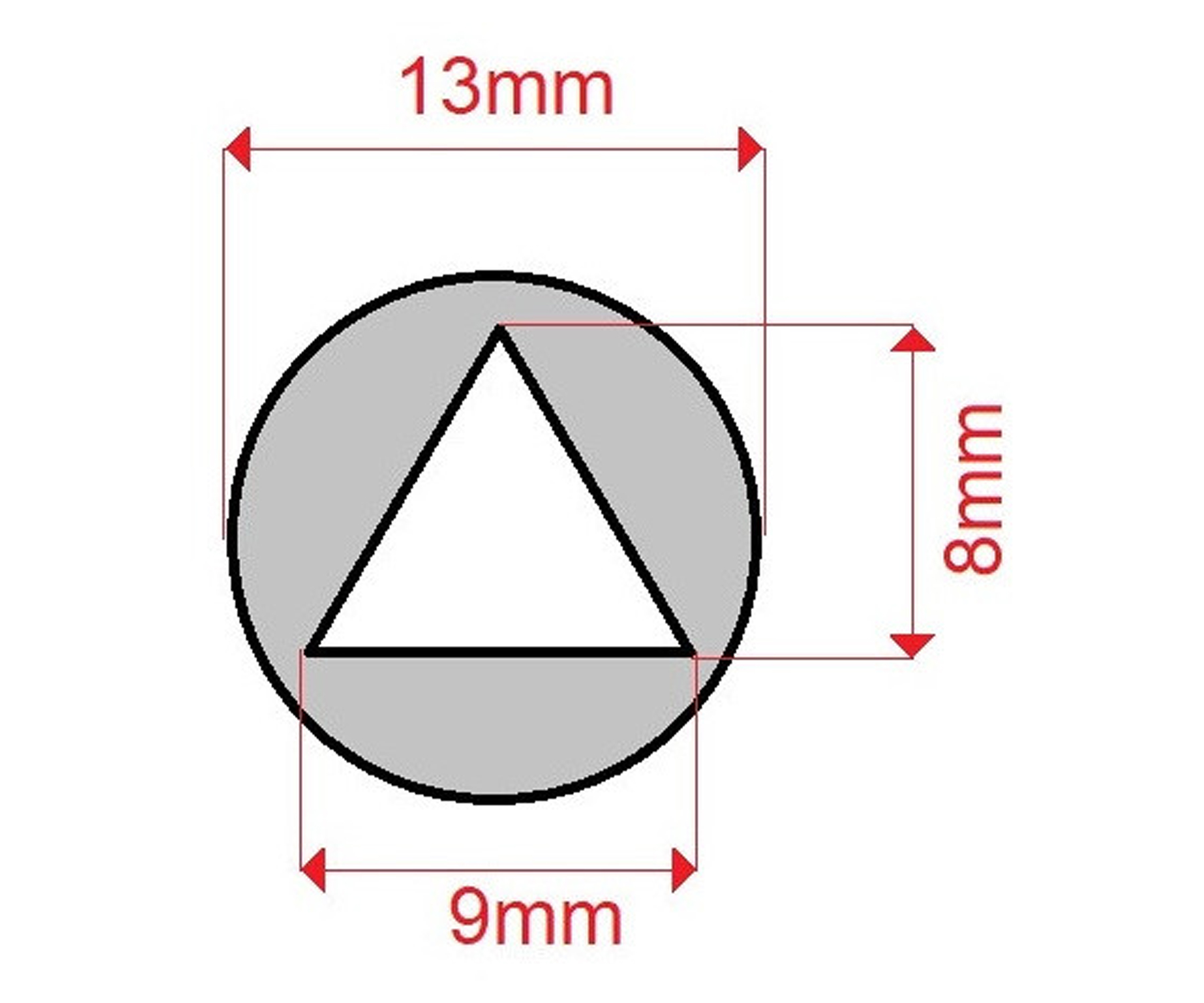 Antgalio dydžiai: Trikampis: 9 mm </span>;