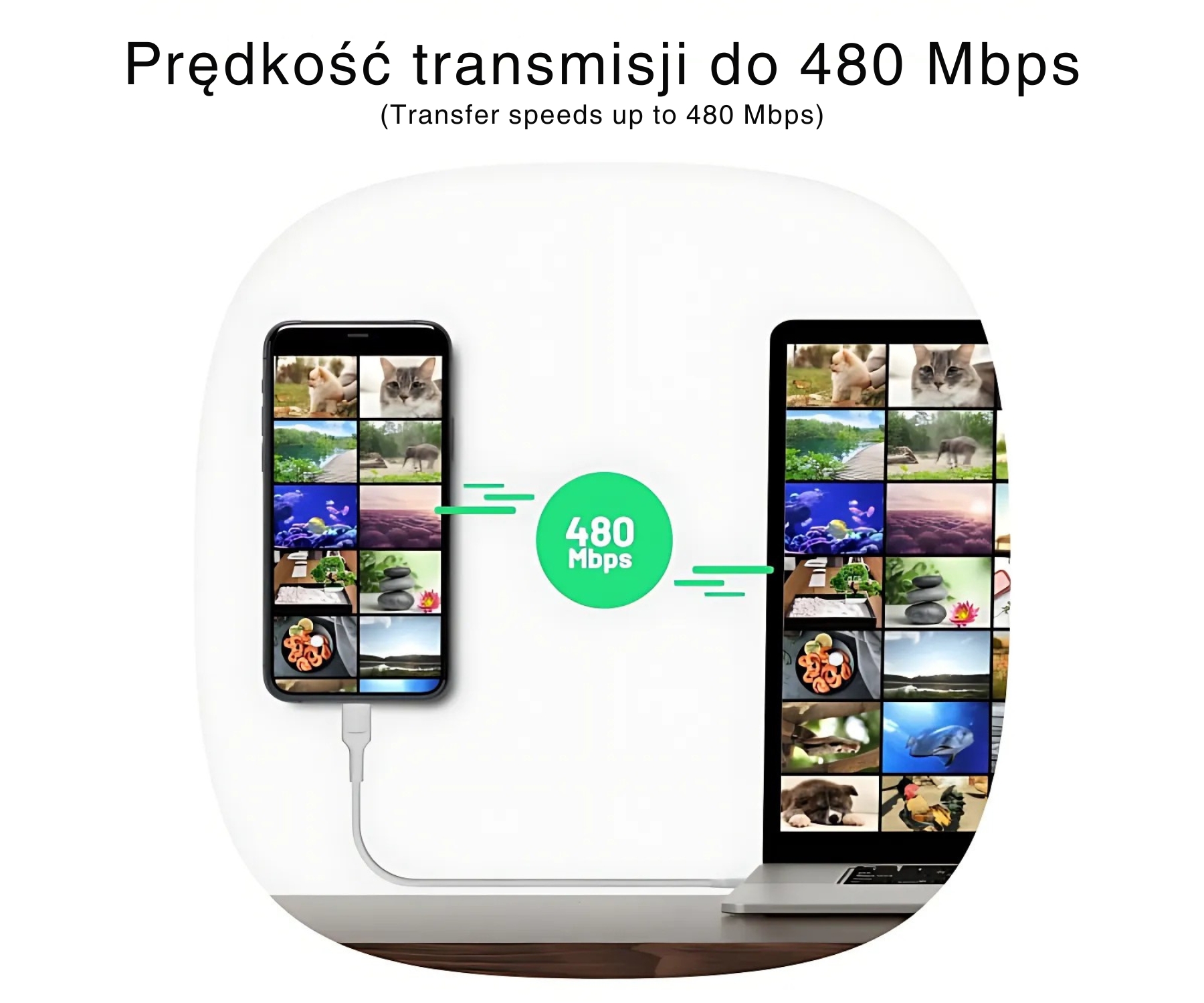 Kabelis: Prijunkite USB-C / Prijunkite USB-C Laido ilgis: 1,2 m Spalva: Balta USB standartas: 2.0 Pasirinktos funkcijos: 100 W PD atbalsts Atbalstītais pārraides ātrums : 480 Mbps Ātrās uzlādes tehnoloģija – Green Cell Ultra Charge