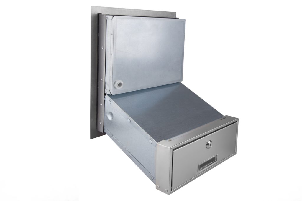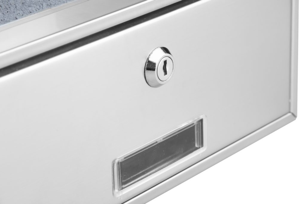 Prekės aprašymas 24 mm aukščio 350 mm yra nuleidžiama anga, pritvirtinta atvartu. A4 formato korespondencijos anga turi kreivę, dėl kurios pašaliniams asmenims ją sunku išimti. Galinėje 260 mm pločio ir 110 mm aukščio panelėje sumontuotos rakinamos durys su langu, leidžiančiu apžiūrėti turinį neatidarius dėžutės.