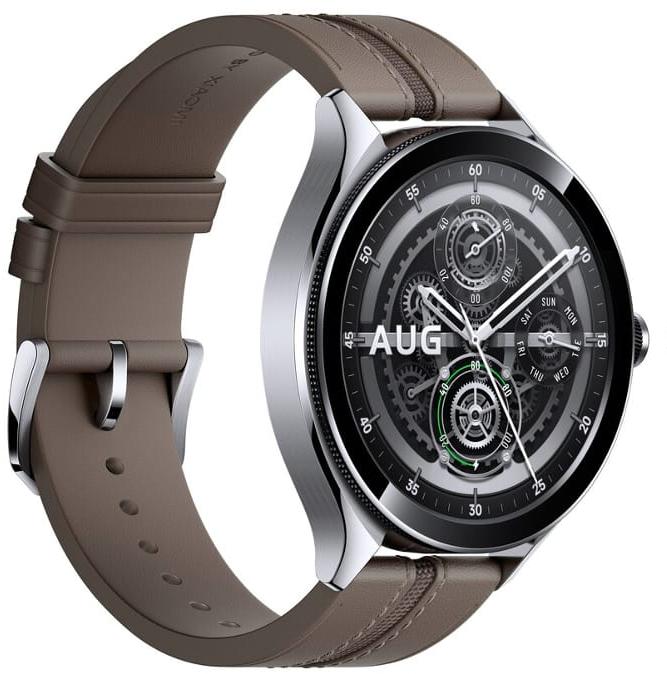 Išmanusis laikrodis Xiaomi Watch 2 Pro, sidabro spalvos, su odiniu dirželiu