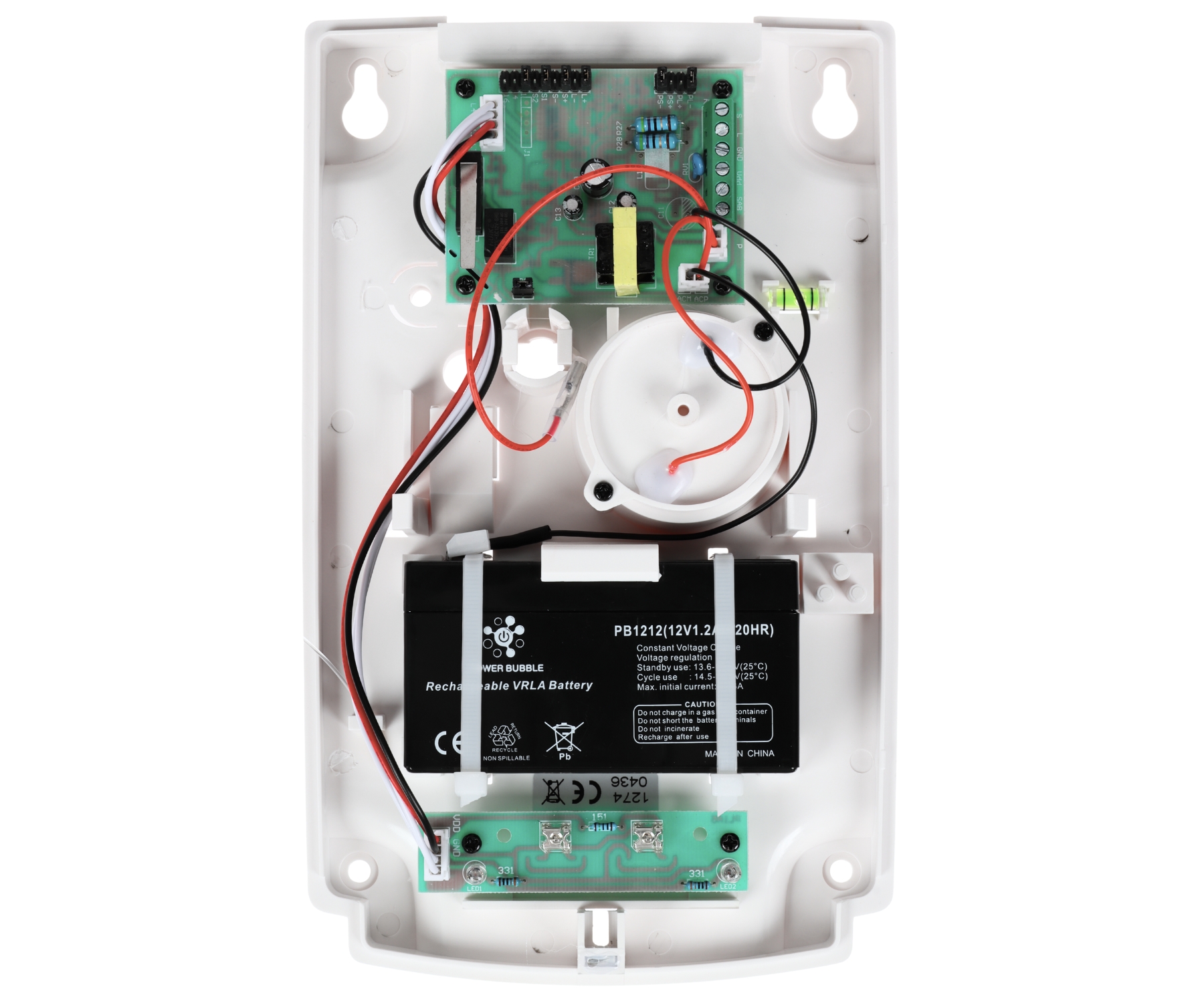 Skaņas intensitātes līmenis: 115 dB Maksimālais strāvas patēriņš: 500 mA Iekšējais akumulators: 12 V / 1.2 Ah (komplektā) Krāsa: Balts + Zils Darba temperatūra: -35 °C … 55 °C Energoapgādes avots: 12 V … 13.8 V DC