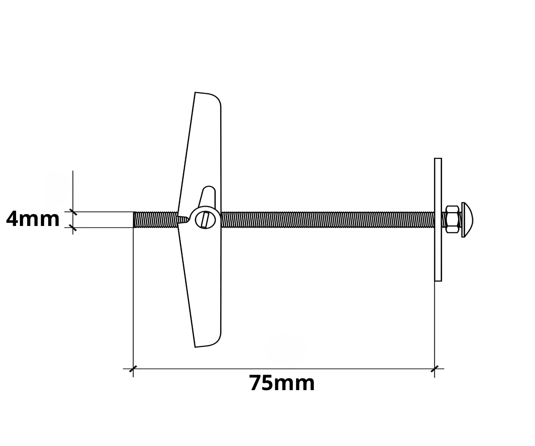 Iepakojumā: 2 gab. Cena par iepakojumu Skrūve: M4 Urbšanas diametrs: 14 mm Kopējais garums: 75 mm Pielietojums: ģipškartona plāksne