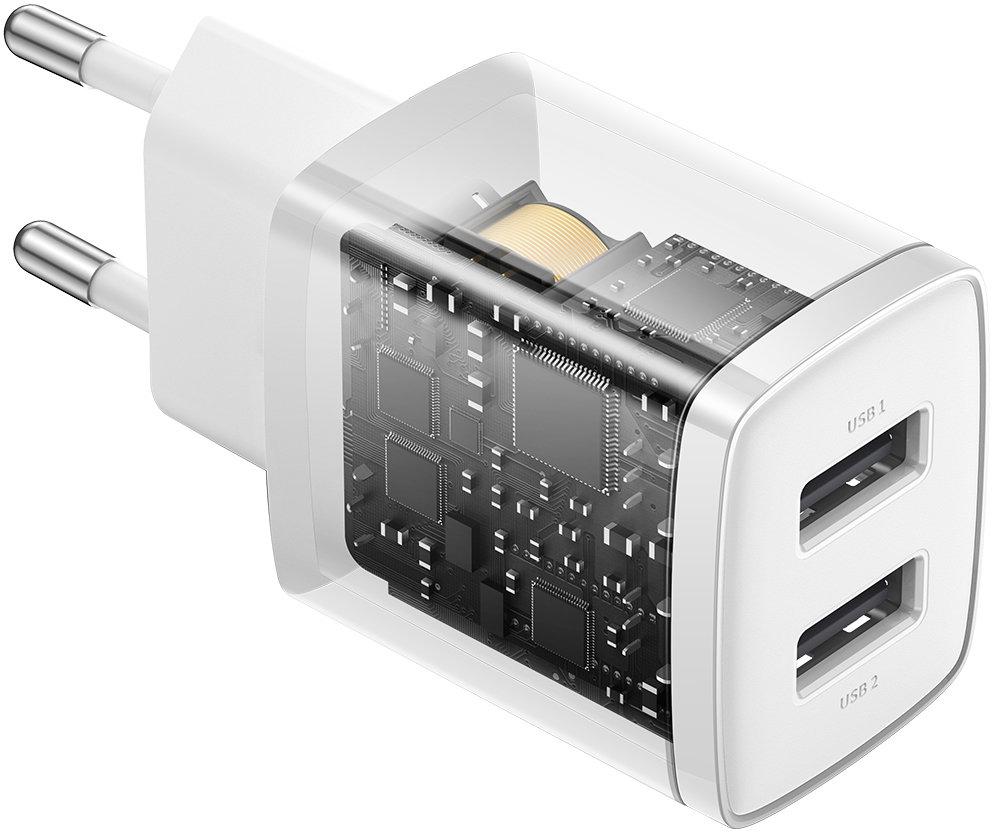 Baseus kompakts balts tīkla lādētājs 2x USB 10,5 W CCXJ010202 — galvenās iezīmes: