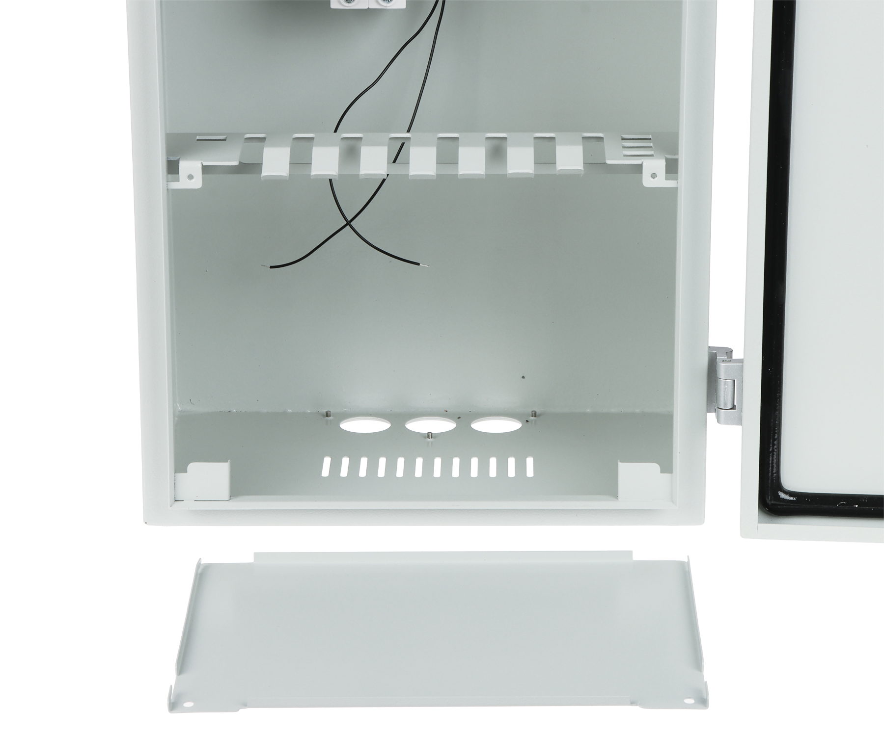 Izgatavošanas materiāls: Cinkots tērauds C45 Krāsa: Gaiši pelēks Izvēlētās īpašības: – Aizsardzības klase : IP65 Atveres kabeļiem no apakšas : 3 x Ø 25 mm Korpusa ārējie izmēri: 424 x 285 x 205 mm Iekšējie izmēri: 350 x 220 x 175 mm