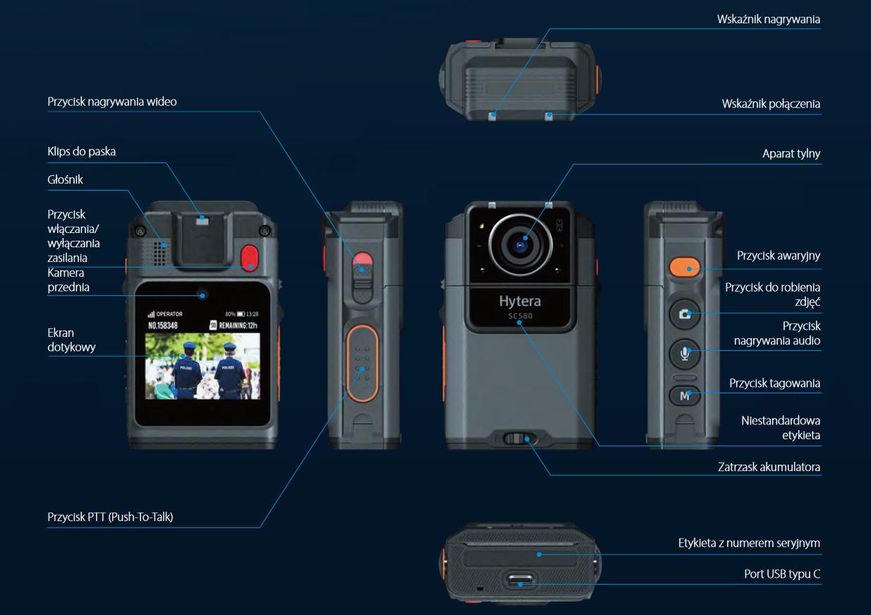 Pie ķermeņa nēsātā Hytera SC580 4G kamera nodrošina drošību, ierakstot augstas kvalitātes video, audio un fotoattēlus un tos droši uzglabājot. SC580 var arī pārraidīt un pārraidīt tiešraidi uz komandu centru, izmantojot mobilo tīklu vai WLAN.