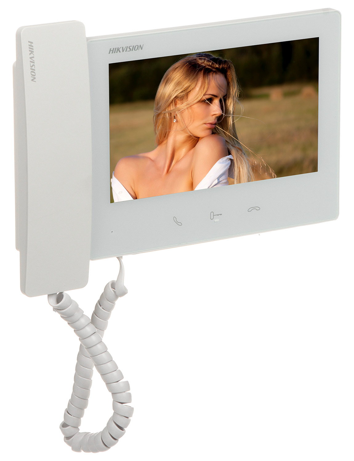 Saderība: Hikvision 2-wire moduļu video domofoni – EY sērija Ekrāns: 7 " – ietilpīgs skārienjutīgs ekrāns Izšķirtspēja: 1024 x 600 Iekšējā atmiņa: 128 MB (iebūvēta) Izvēlētās funkcijas: Modulis Wi-Fi – IEEE 802.11 b/g/n, Divvirzienu komunikācija, Austiņa, Automātiska fotoattēlu uzņemšana un saglabāšana, ja nav atbildes uz zvana pogu, Trauksmes signāla ieejas: 1 Energoapgādes avots: 48 V DC – HIKVISION 2-wire
