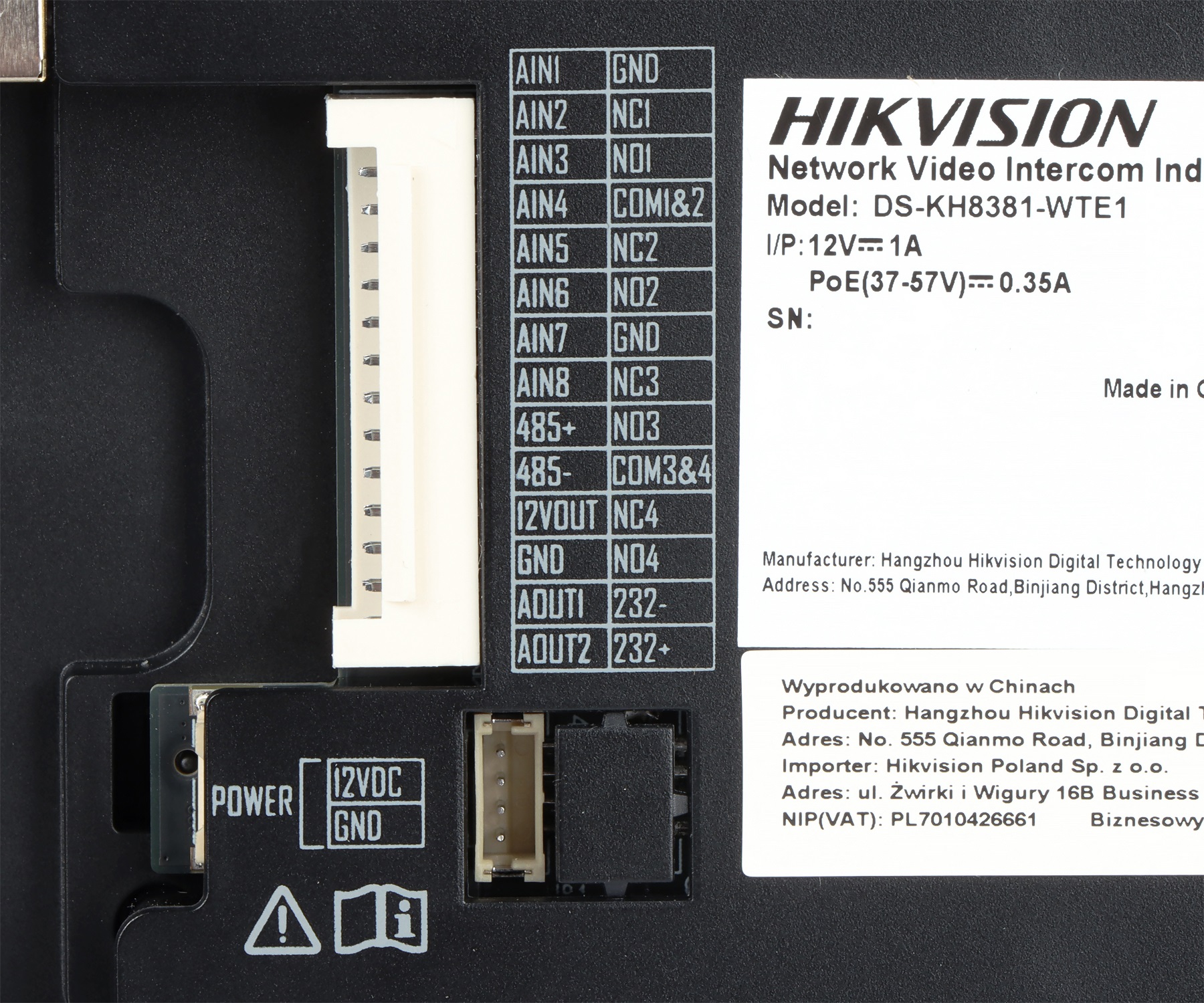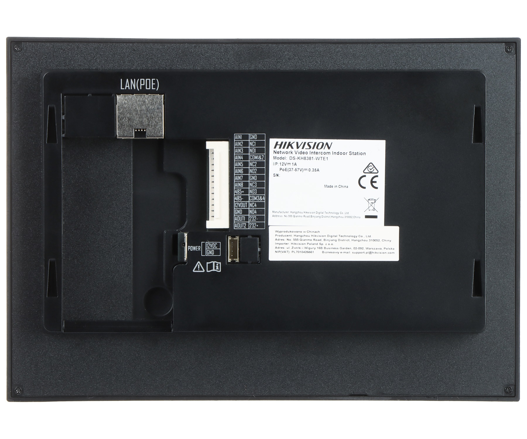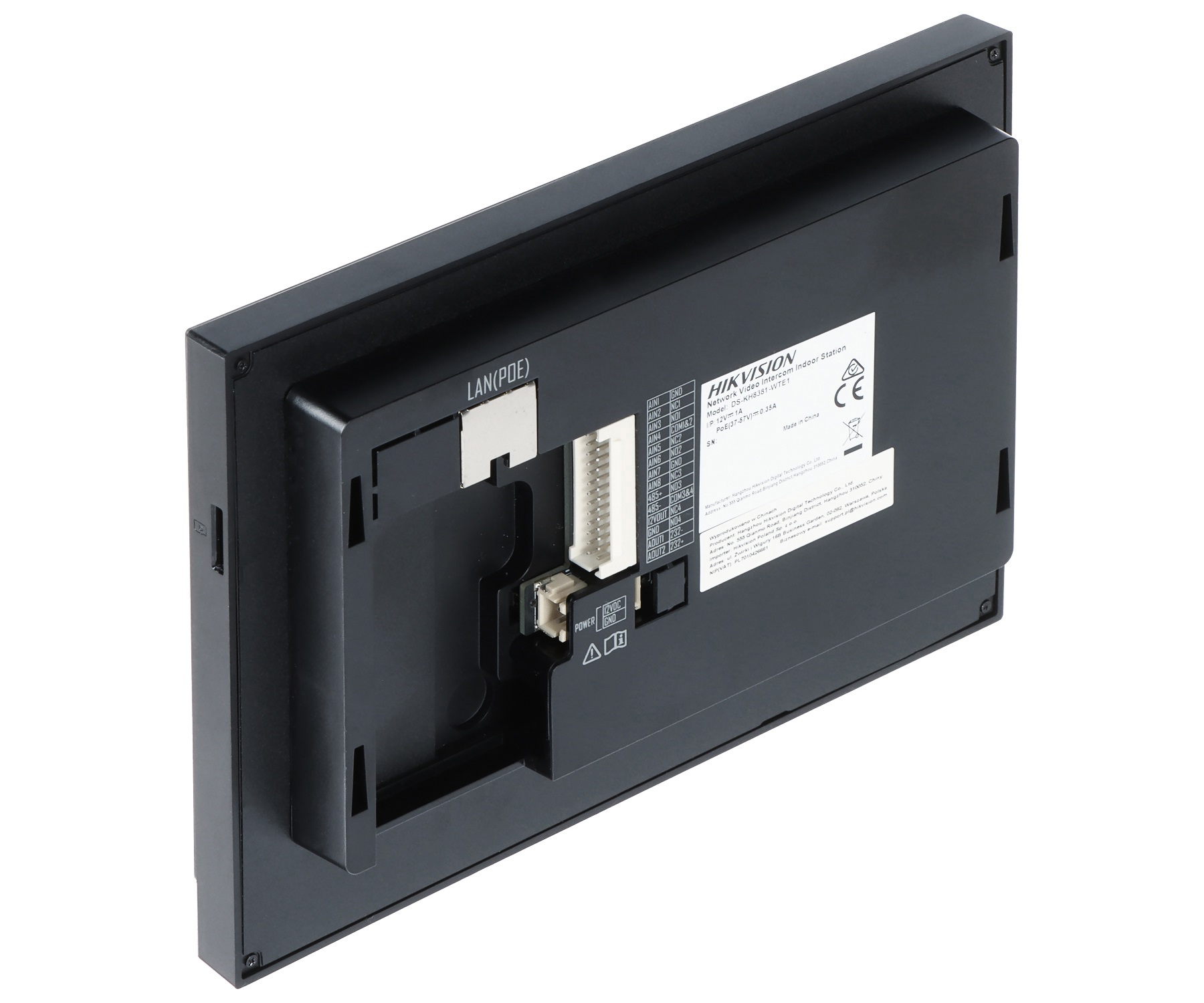 Saderība: Hikvision IP videodomofoni Ekrāns: 7 " IPS – ietilpīgs skārienjutīgs ekrāns Izšķirtspēja: 1024 x 600 Iekšējā atmiņa: 128 MB (iebūvēta) Izvēlētās funkcijas: Modulis Wi-Fi – 2.4 GHz IEEE 802.11 b/g/n, Releja izejas : 4 x NO/NC, Fiziska poga durvju atvēršanai, Attāla atvēršana ar mobilā klienta vai programmatūras palīdzību, Divvirzienu komunikācija, Automātiska fotoattēlu uzņemšana un saglabāšana, ja nav atbildes uz zvana pogu, Trauksmes signāla ieejas: 8 Energoapgādes avots: PoE (802.3af/at), 12 V DC