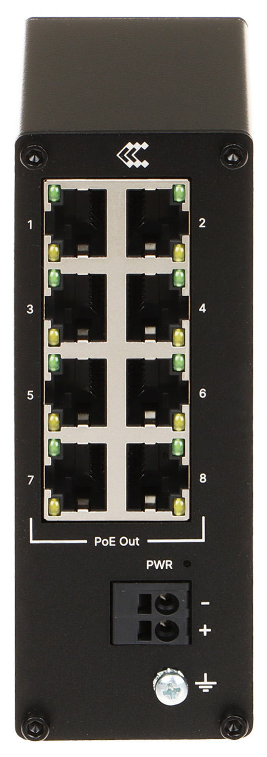LAN porti: 8 x RJ45 ( 8 x PoE (802.3af/at) ) Pārraides ātrums: 10 / 100 Mbps – 8 LAN & PoE porti Maksimāla kopējā jauda: 240 W Izvēlētās īpašības: Montāža uz DIN sliedes, 2 kontaktu industriālā strāvas kontaktligzda, Plašs atbalstīto barošanas spriegumu diapazons Energoapgādes avots: 7 … 57 V DC, 44 … 57 V DC – PoE IN