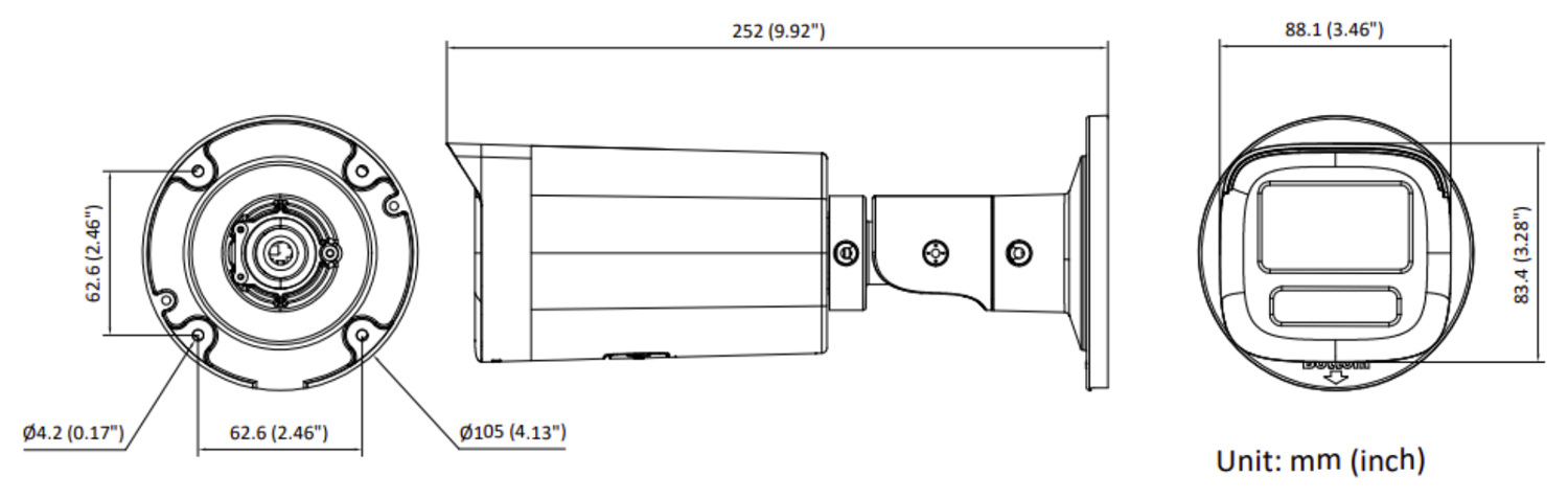 Izšķirtspēja: 1920 x 1080 Sensors: 1/2.9 " Redzamības leņķis: 102 ° … 31 ° LED baltās gaismas diapazons: 50 m Infrasarkano staru apgaismes uztveršanas zona: 50 m Attēla kompresijas metode: H.265+ Audio: Iebūvēts mikrofons Energoapgādes avots: PoE (802.3af), 12 V DC