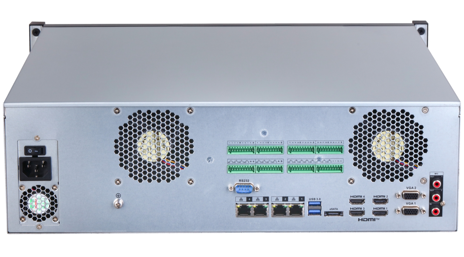 Tīkla video ierakstītājs aprīkots ar advancētu attēla analīzes funkciju; Atbalstītā izšķirtspēja: max. 32 Mpx Audio atbalsts: 64 Kanāli – Audio no kamerām, Garso detekcija Audio ieeja: 1 gab. CINCH Audio izeja: 2 gab. CINCH Attēla kompresijas metode: Smart H.265+ Atbalstītie cietie diski: 16 x 20 TB SATA + 1 x eSATA, Raid 0/1/5/6/10 Avārijsignalizācijas ieejas / izejas: 32 / 16 Izvēlētās funkcijas: Panelis ar LCD displeju, Inteliģenta attēla analīze, veido detekcija, Sejas atpazīšana