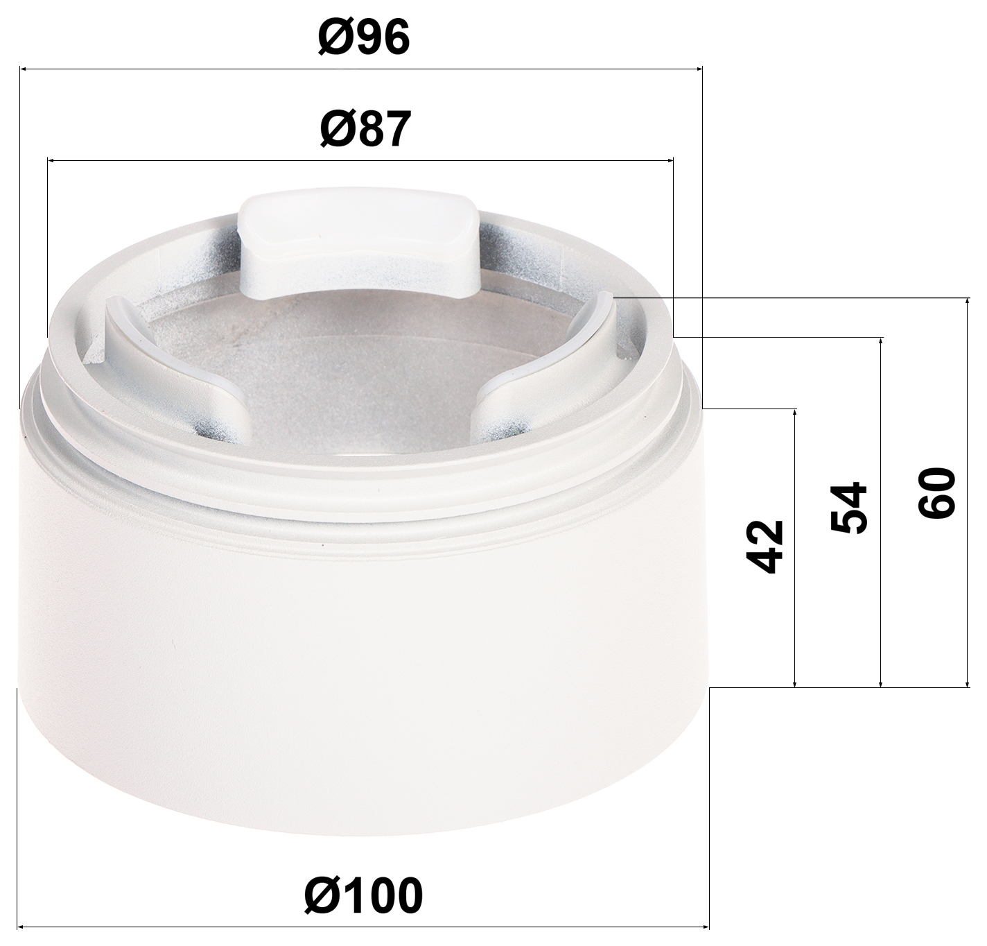 Ideāli piemērots savienotāju un vadu apslēpšanai iekšpusē; Stiprinājuma diametrs: Ø 100 mm Materiāls: Plastmasa Krāsa: Balts Attālums no montāžas virsmas: 42 mm