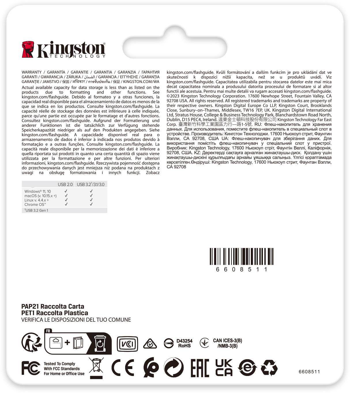 - Kompakts izmērs padara Kingston Data Traveler DTSE9G3 64GB USB 3.2 Gen 1 par ideālu ceļojuma kompanjonu, ko var viegli glabāt jebkurā vietā, ><> nodrošinot ātru piekļuvi datiem