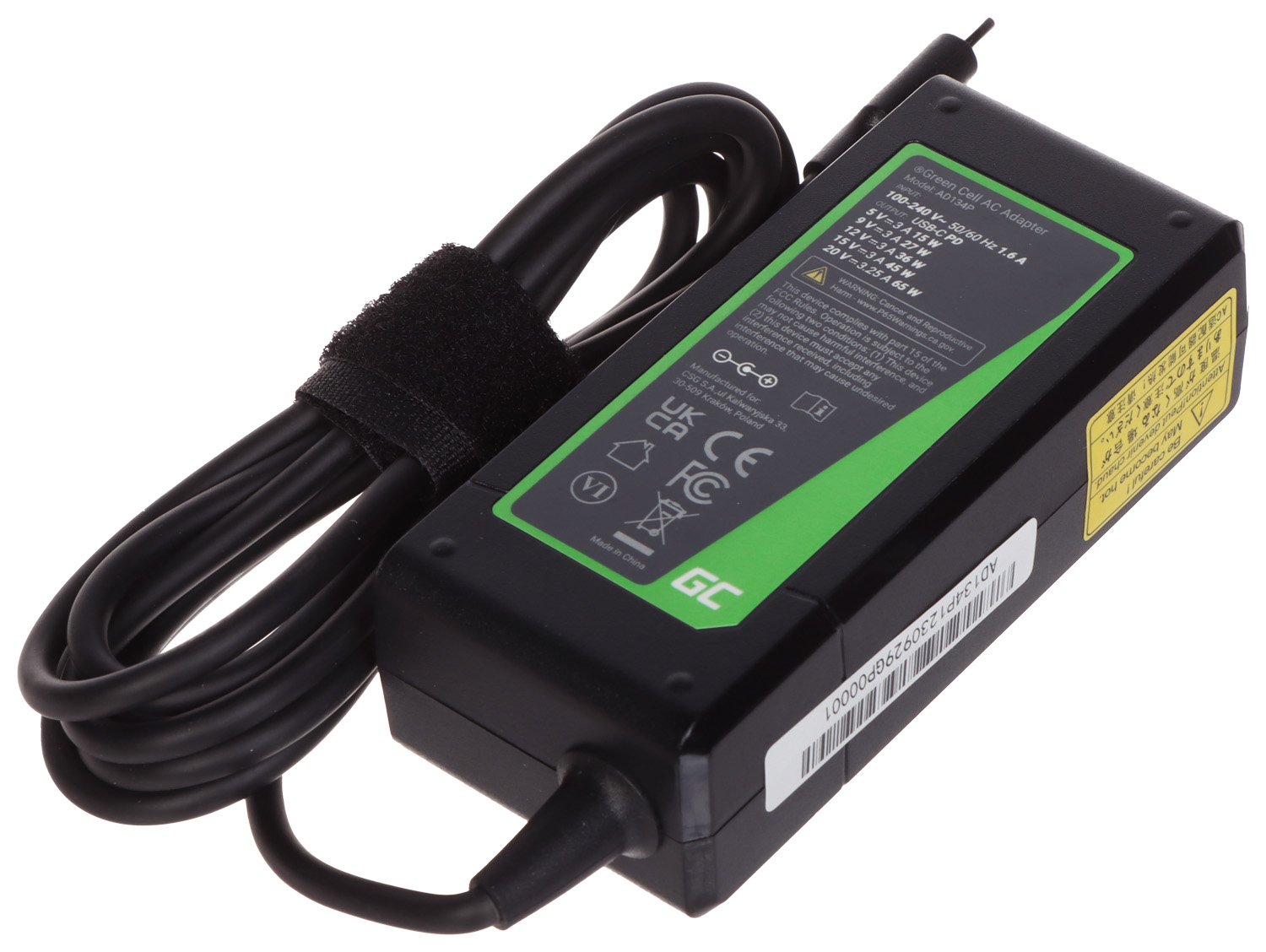 Izejas spriegums: 5 / 9 / 12 / 15 / 20 V DC Izejas strāva: 3 / 3.25 A Izejas jauda: 15 / 27 / 36 / 45 / 65 W Izvēlētās īpašības: Power Delivery tehnoloģija – 65 W