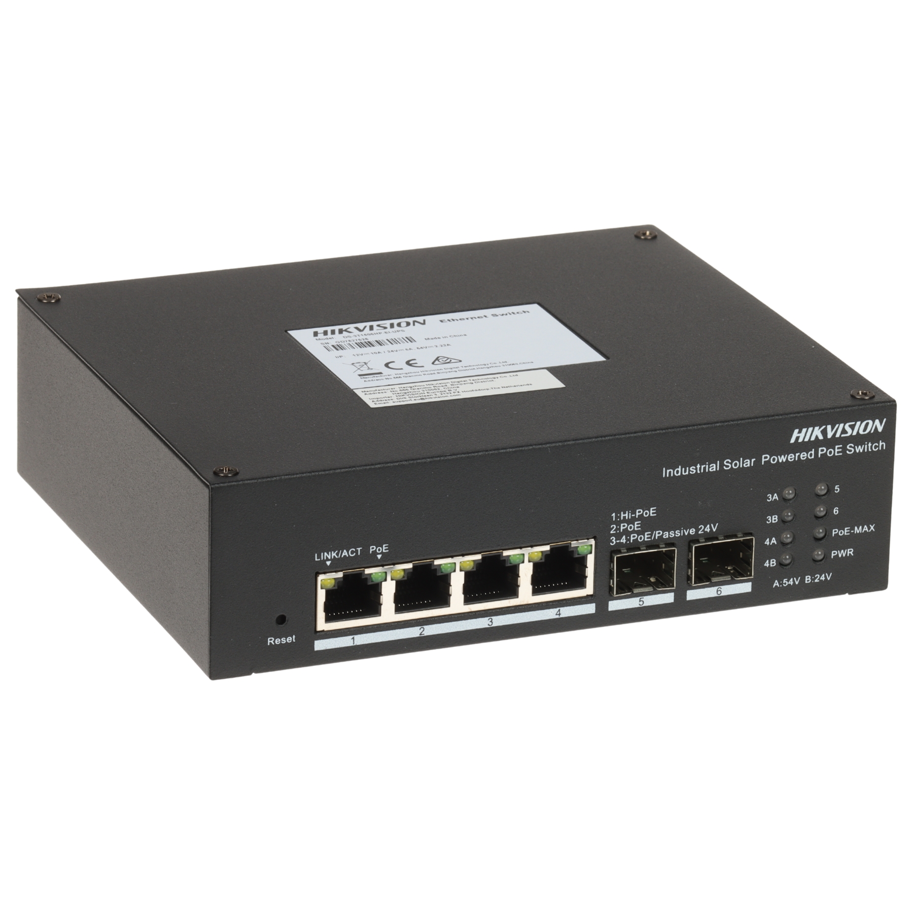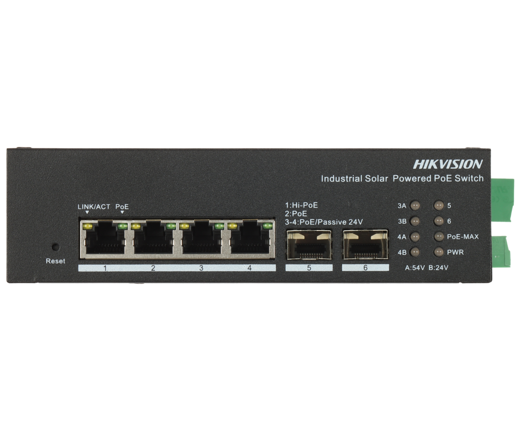 Power, PoE Max, Link/Act, PoE, 5 SFP, 6 SFP, 3A RJ-45, 3B RJ-45, 4A RJ-45, 4B RJ-45 |