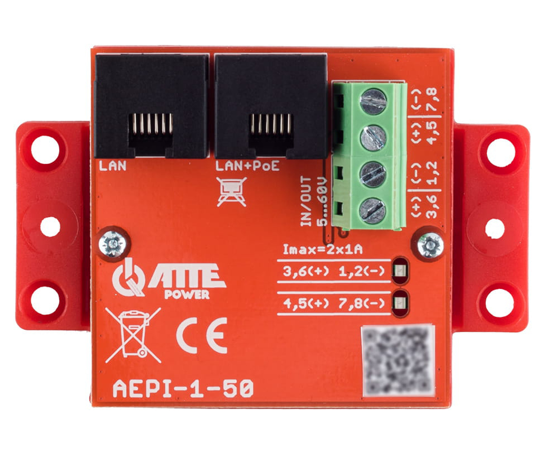 Iespēja pārraidīt datus un divus sprieguma līmeņus pa vienu vītā pāra kabeli. Divas neatkarīgas barošanas ieejas/izvades (viena 1-2, 3-6 pāriem, otra 4-5, 7-8 pāriem). Aizsardzības klase : IP20 |