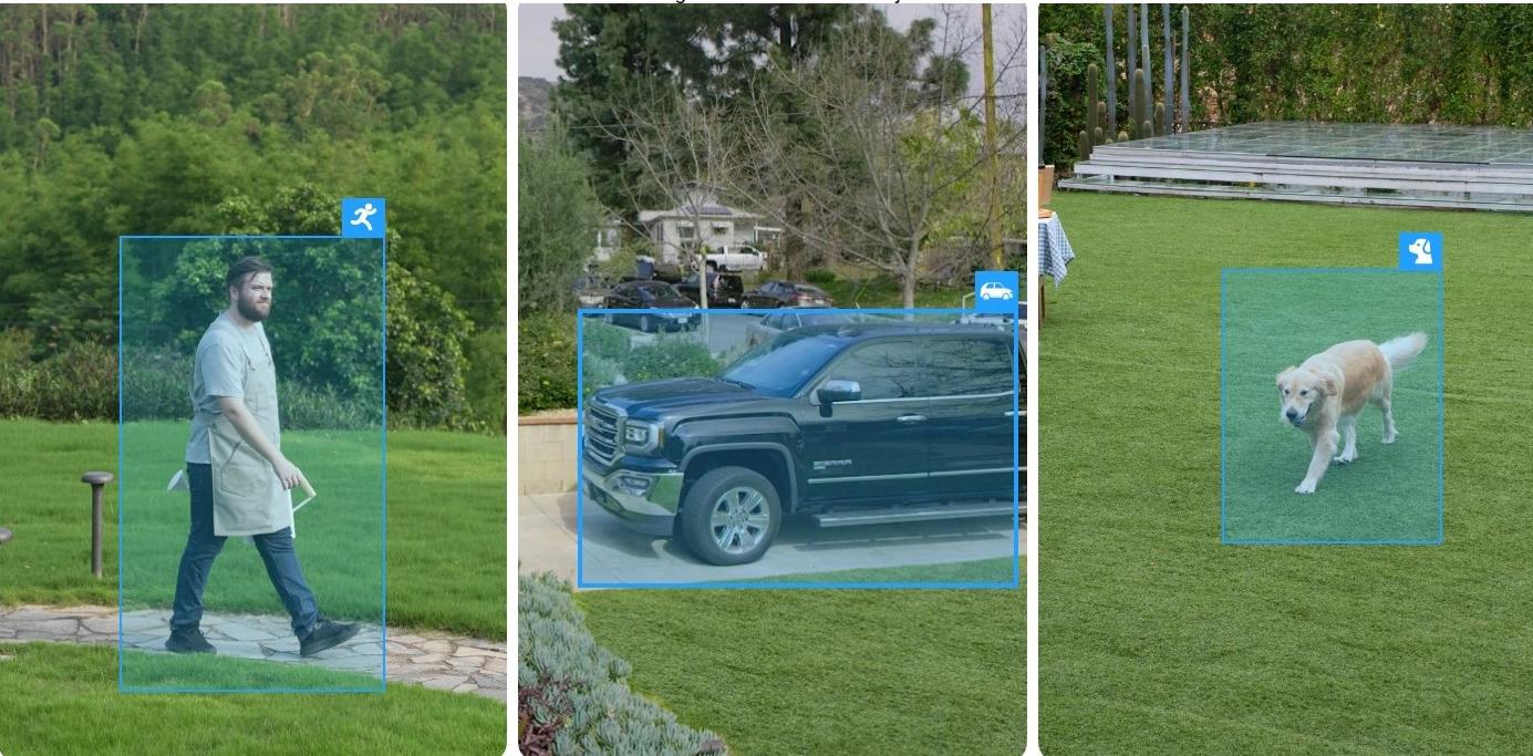 - Līdu, transportlīdzekļu un dzīvnieku noteikšana, pateicoties uzlabotai mākslīgā intelekta analīzei.
