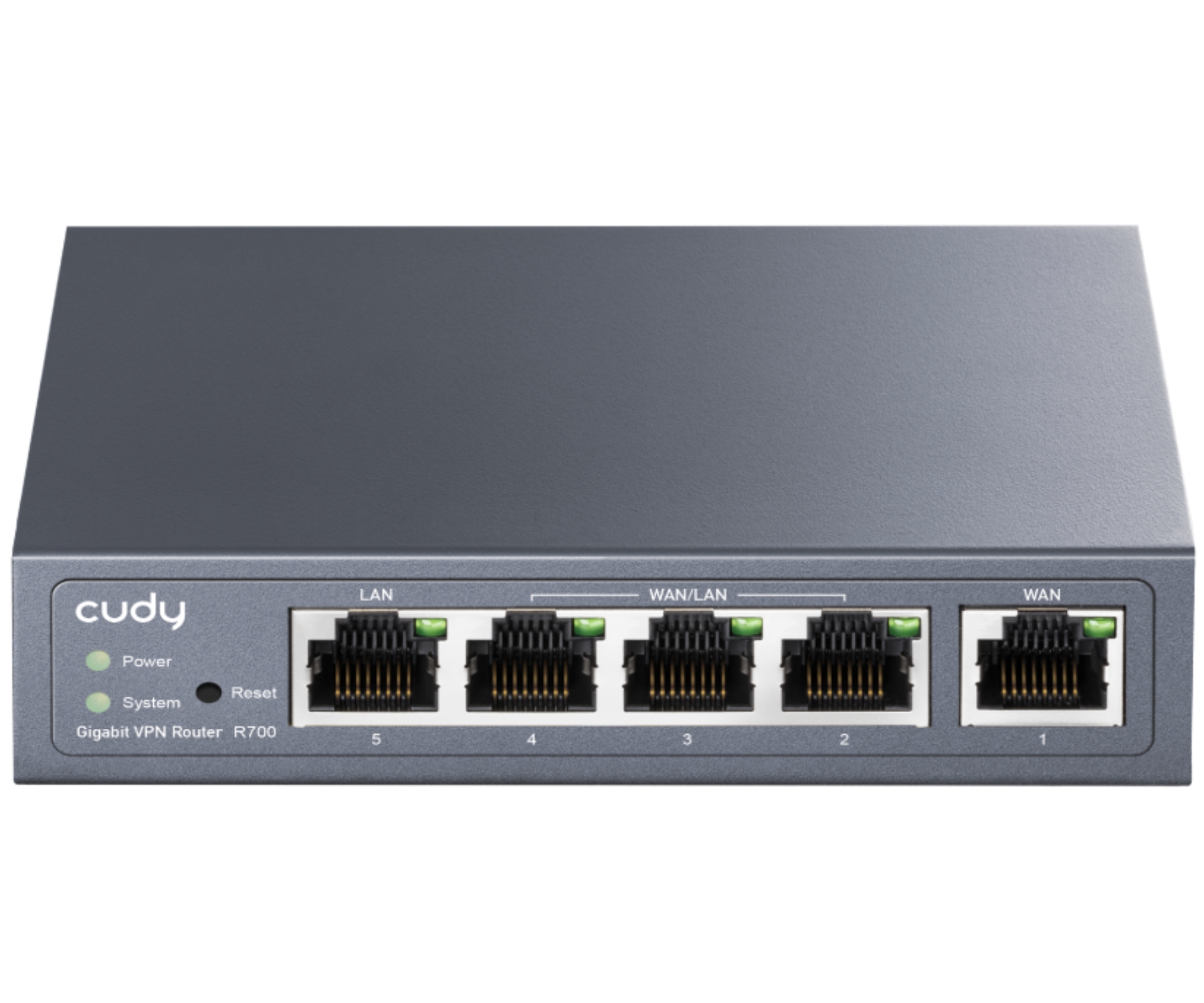 1 x LAN 10/100/1000 Mbps (RJ-45), 1 x WAN 10/100/1000 Mbps (RJ-45), 3 x LAN/WAN 10/100/1000 Mbps (RJ-45) |