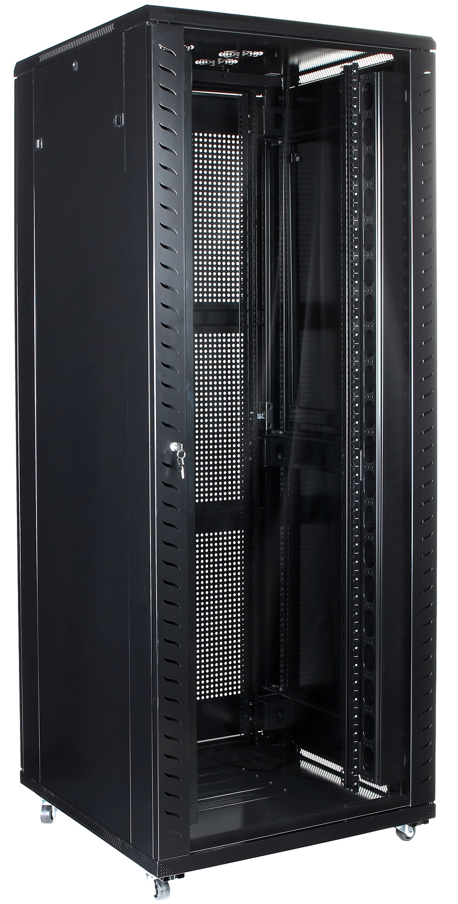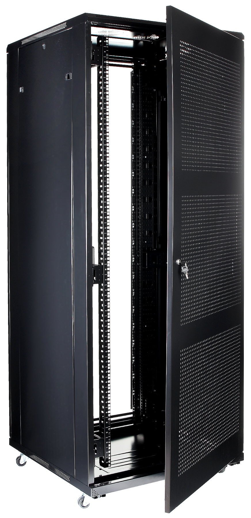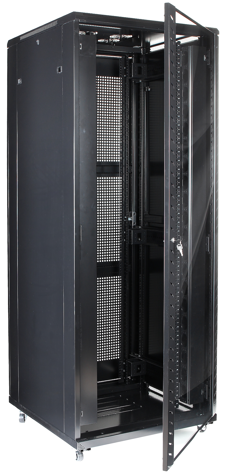 | Izvēlētās īpašības: | Atvere vadiem: aizmugurējā sieniņā, no augšas, no apakšas Kabeļa ievades izmēri grīdā 380 x 280 mm Noņemamas sānu sieniņas Durtiņu montāžas gan kā labās, gan kā kreisās Komplektā 4 atslēgas Četras rack slieces ierīces uzstādīšanai (divas priekšpusē un divas aizmugurē) Skapi pārvieto uz braucamajiem ritenīšiem, nostabilizē ar 4 izskrūvējamām kājiņām |