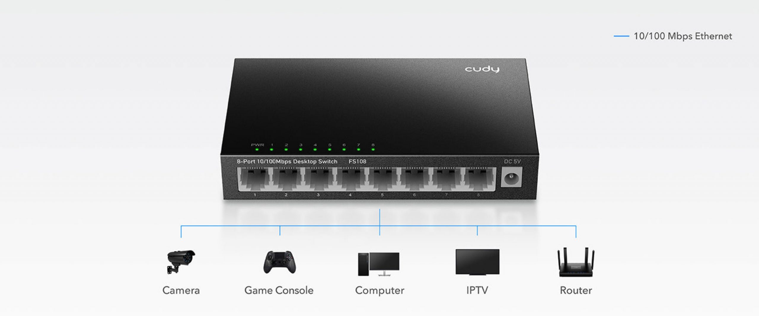 10 / 100 Mbps, 8 LAN porti |