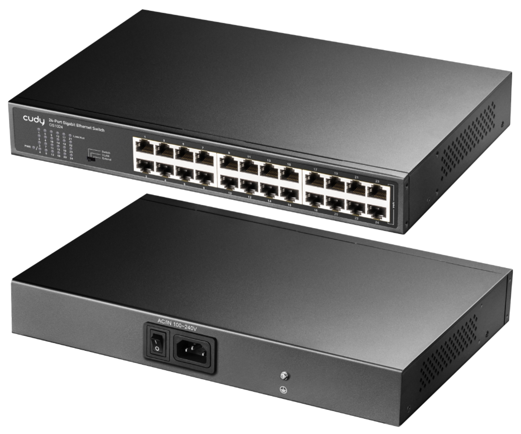 LAN porti: 24 x RJ45 Pārraides ātrums: 10 / 100 / 1000 Mbps MAC adrešu tabula: 8k
