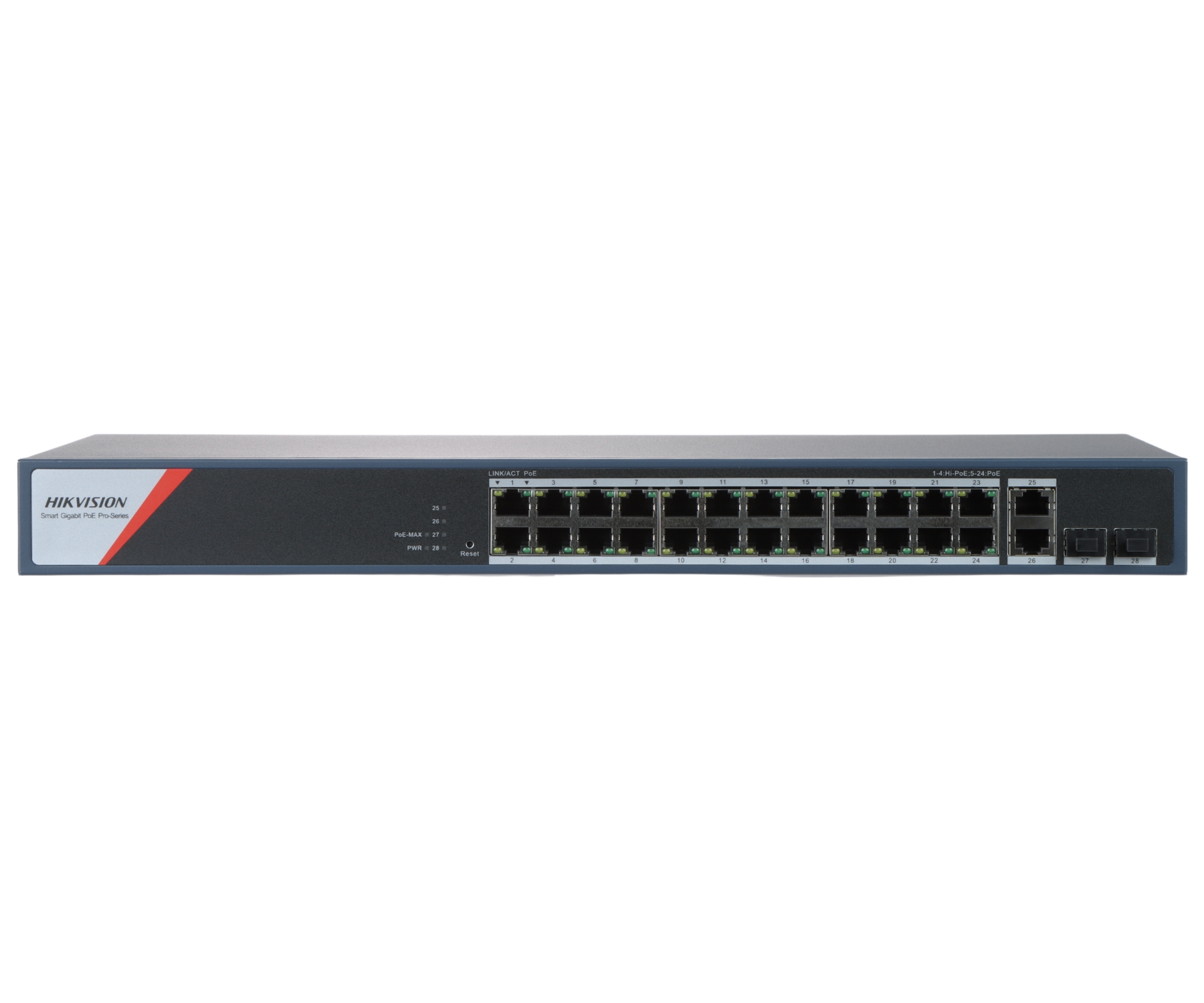 Power, Link/Act, PoE, PoE Max, 25 LAN/WAN, 26 LAN/WAN, 27 SFP, 28 SFP |