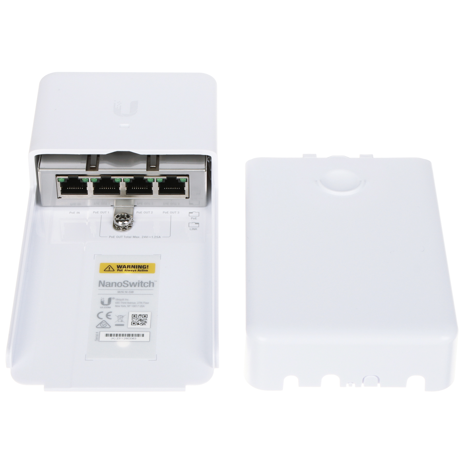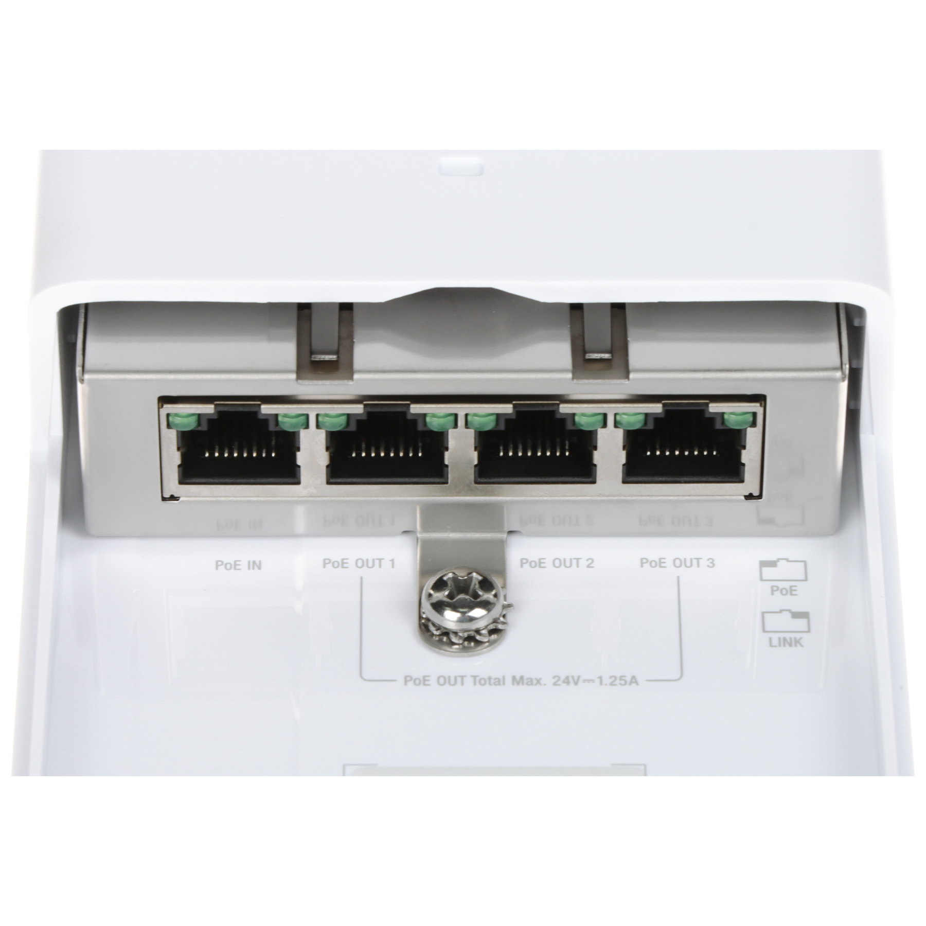 LAN porti: 4 x RJ45 – Ubiquiti Passive PoE ( 1 x PoE IN ; 3 x PoE OUT ) Pārraides ātrums: 10 / 100 / 1000 Mbps – 4 LAN & PoE porti Maksimāla kopējā jauda: 30 W Korpuss: Plastmasa (polikarbonāts), Noturīga pret atmosfēras apstākļiem