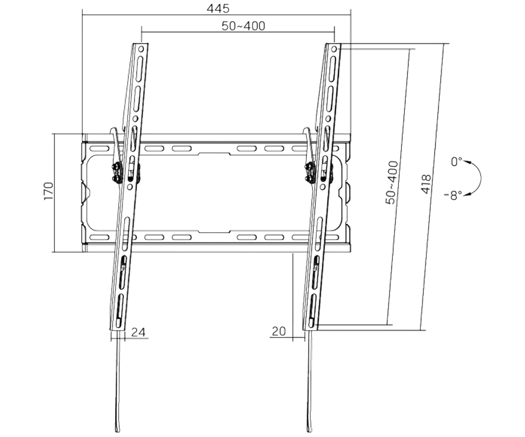 Ekrāna izmērs collās: 32 " … 70 " Slogojamība: 45 kg Attālums no montāžas virsmas: 20 mm