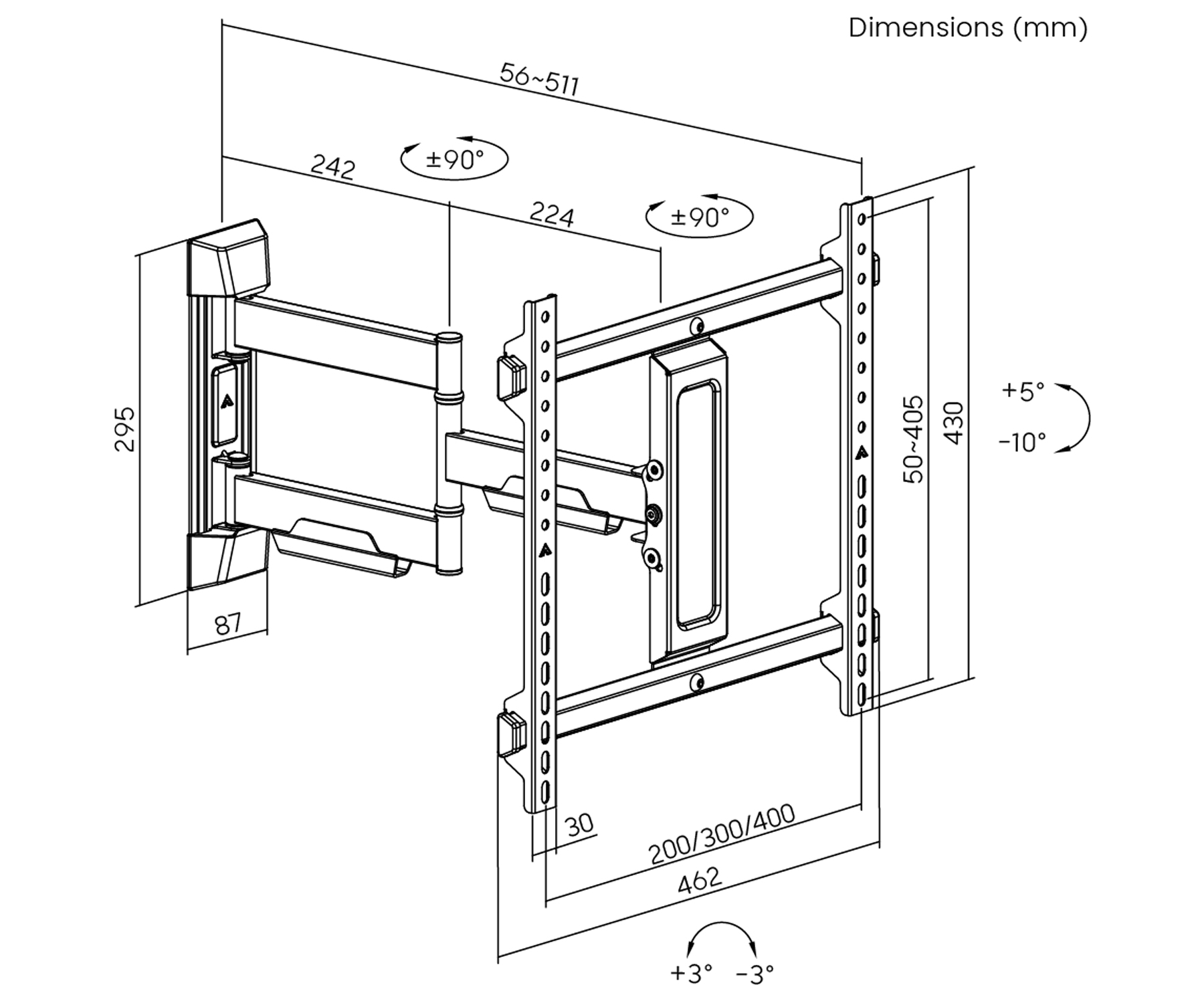 Ekrāna izmērs collās: 32 " … 70 " Slogojamība: 40 kg Attālums no montāžas virsmas: 56 … 511 mm