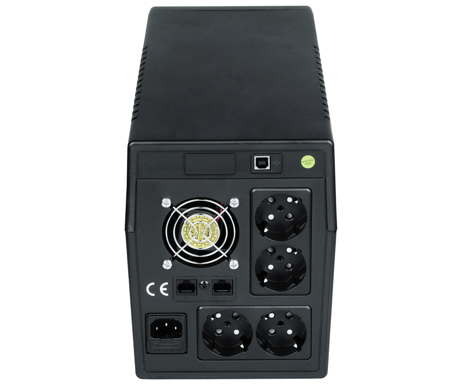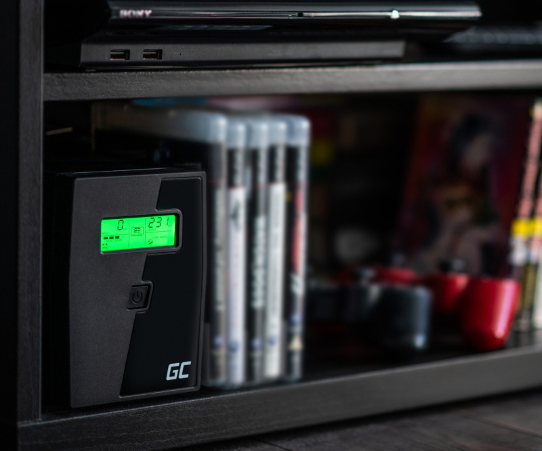Mikroprocesoru vadības sistēma Automātiska UPS diagnostikas sistēma Automātiskais sprieguma regulators AVR Automātiska restartēšana pēc strāvas padeves atjaunošanas tīklā "Aukstā starta" funkcija Uzlāde izslēgtā režīmā Ātra viedās akumulatora uzlādes funkcija Attālā vadība – aplikācija GC UPS ( Darbības parametru parādīšana, grafiks, e-mail ziņojums, vietējā piekļuve ) Interfeiss USB Taustiņš RESET Komplektā kabelis USB A / USB B + Strāvas padeves vads |