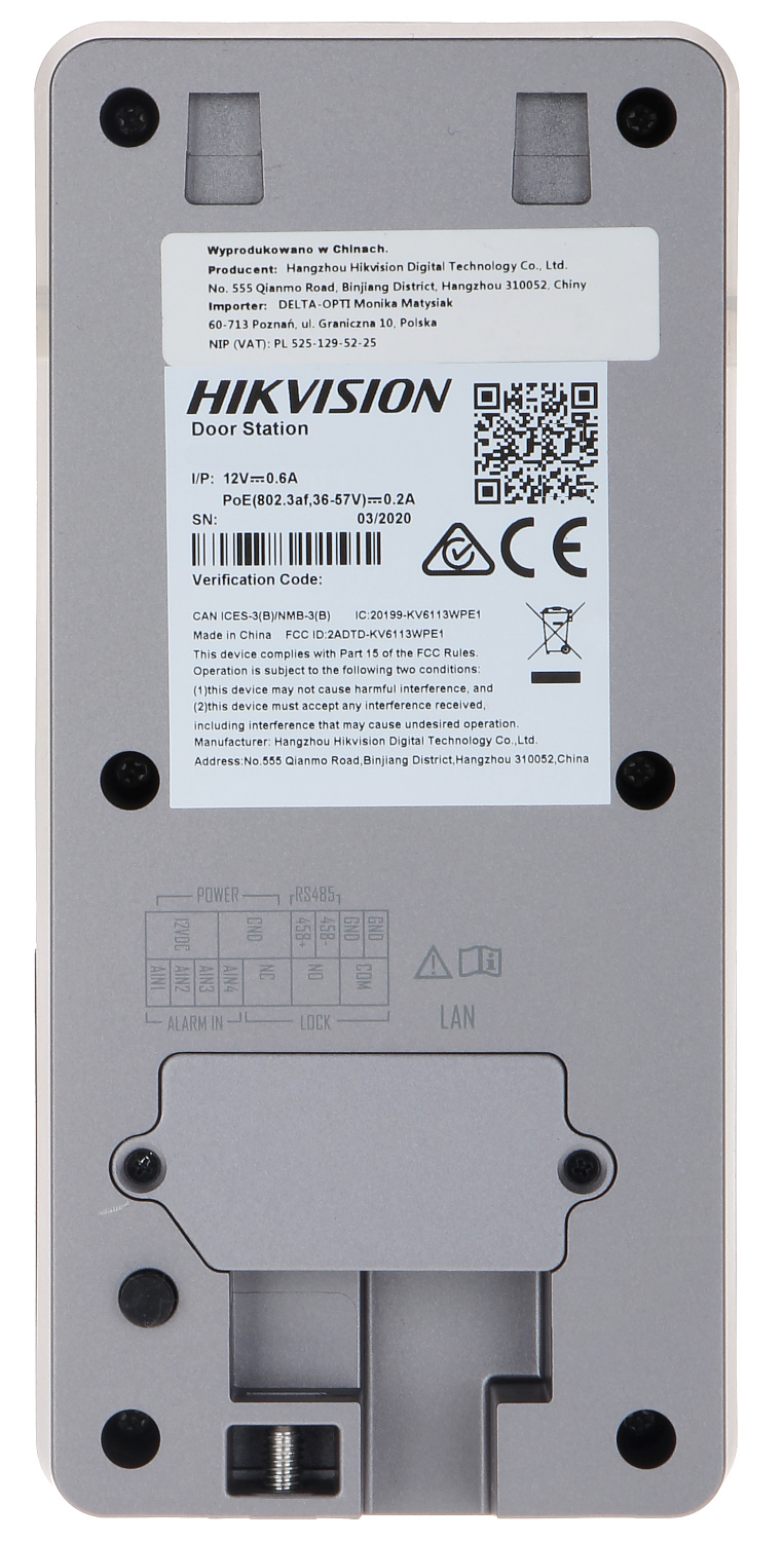Divvirzienu komunikācija, Pilnīgs tīkla atbalsts : WiFi / LAN, Sabotāžas atklāšana – atraušana no virsmas, Video domofons tiek uzstādīts virsapmetuma korpusā Ierīce ir saderīga ar mobilo ierīču lietotni Hik-Connect, bez iekšējā paneļa izmantošanas |