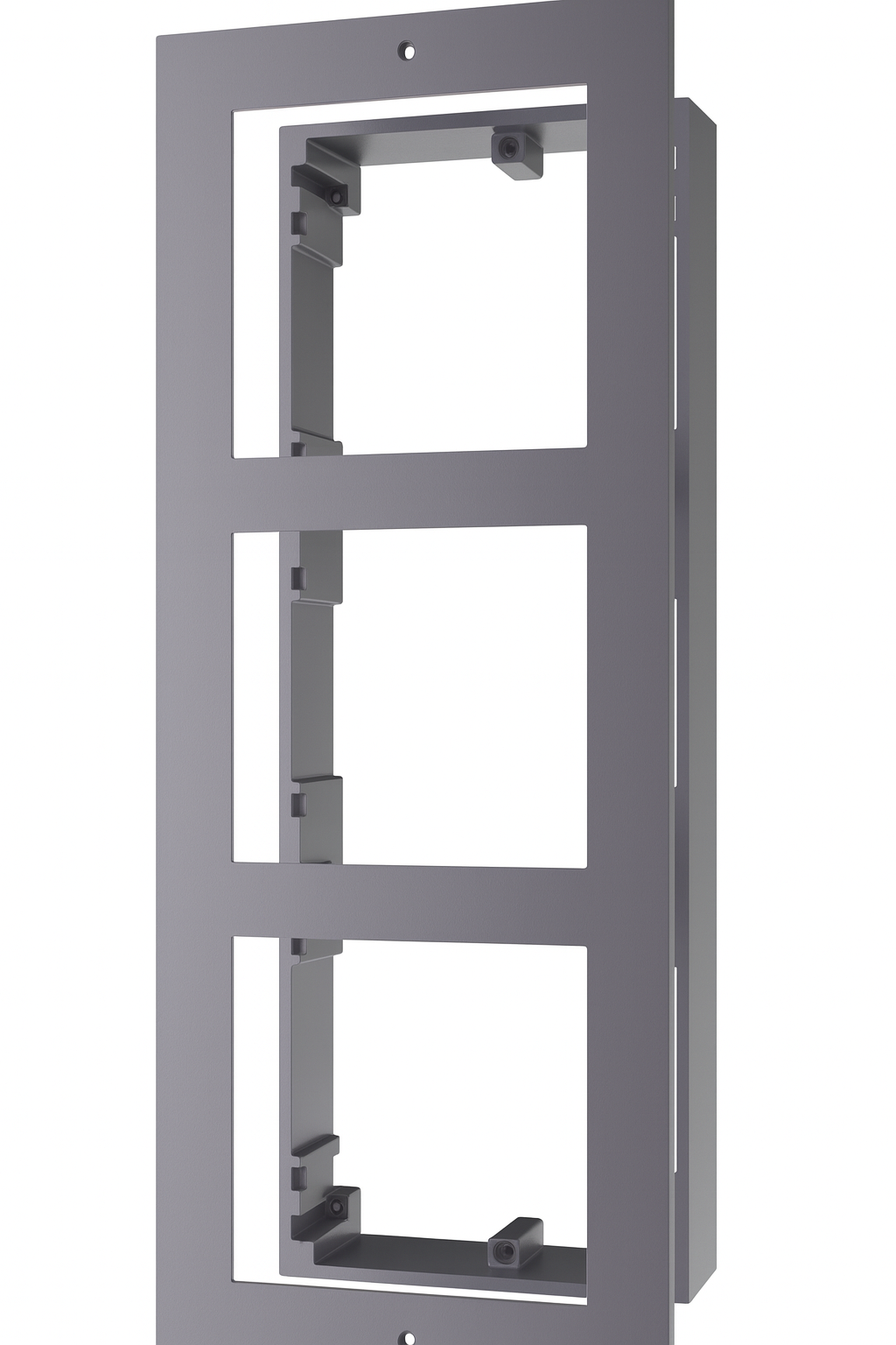 Satur uzstādīšanas rāmi, pārsegu, skrūves utt. Pielāgojas divu moduļu virsmas montāžai. Pārsegs un uzstādīšanas rāmis ir izgatavoti no aviācijas alumīnija. Izgatavots HIKVISION DS-KD domofona moduļiem.