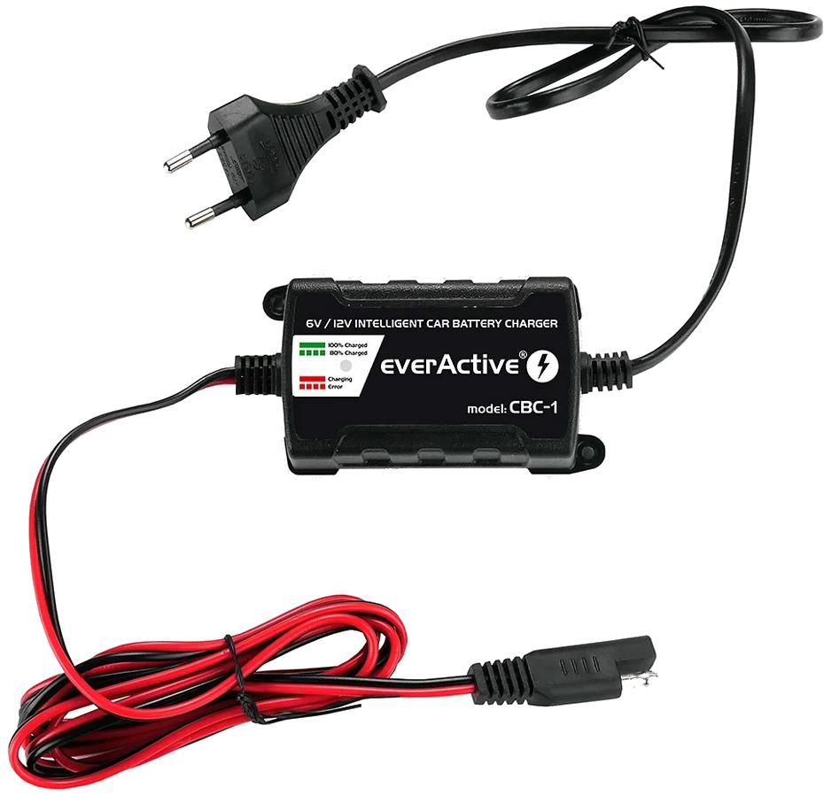 - Зарядное устройство everActive CBC-1 подходит для различных аккумуляторов разной емкости. – также подходит для гелевых аккумуляторов мотоциклов><><>и меньшей емкости./ варианты ed - everActive CBC-1 Зарядное устройство оснащено уникальным съёмным кабелем с быстроразъёмным разъёмом SAE. Это позволяет легко подключить зарядное устройство к имеющемуся аккумулятору, если комплектных кабелей с зажимами типа «крокодил» и петлевыми клеммами недостаточно.