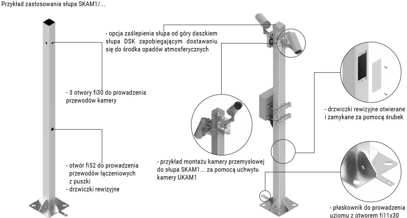 – при заказе от 50 штук и более возможно изготовление столбов по чертежам заказчика, например, изготовление специальных отверстий для крепления камер с установленными заклепочными гайками, изготовление столбов определенной длины
